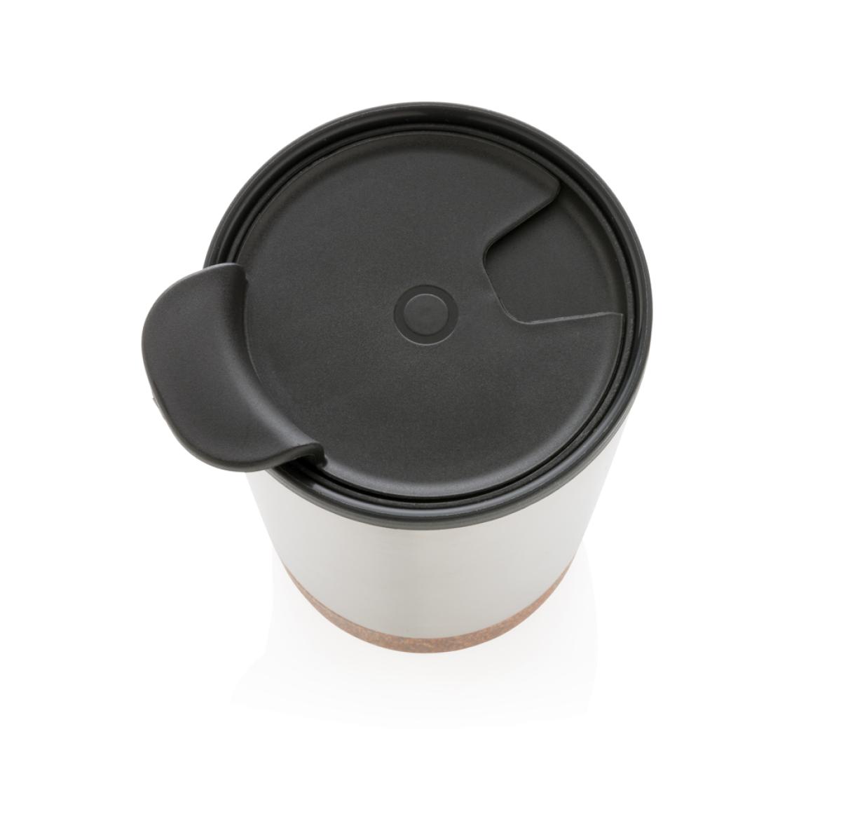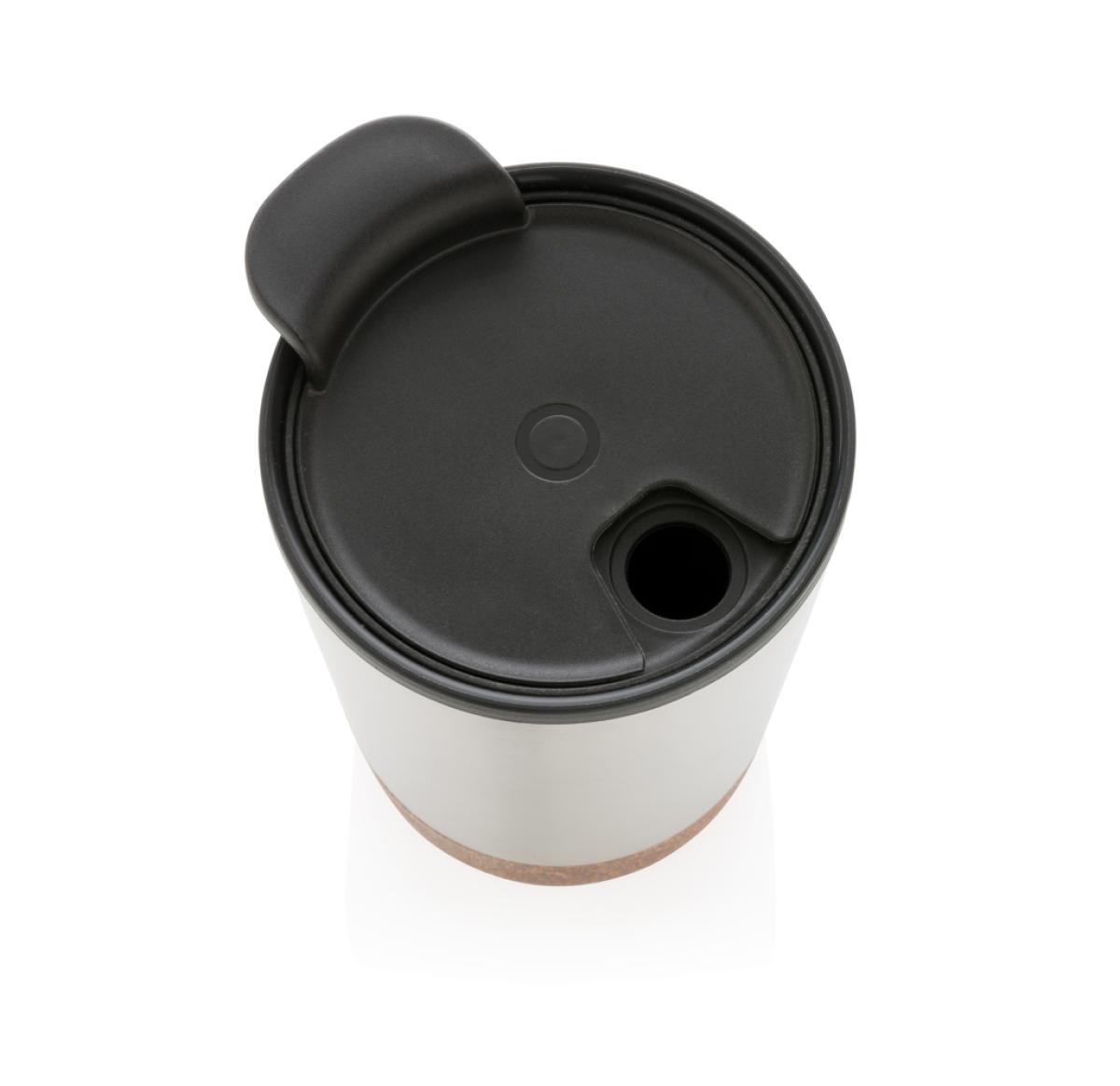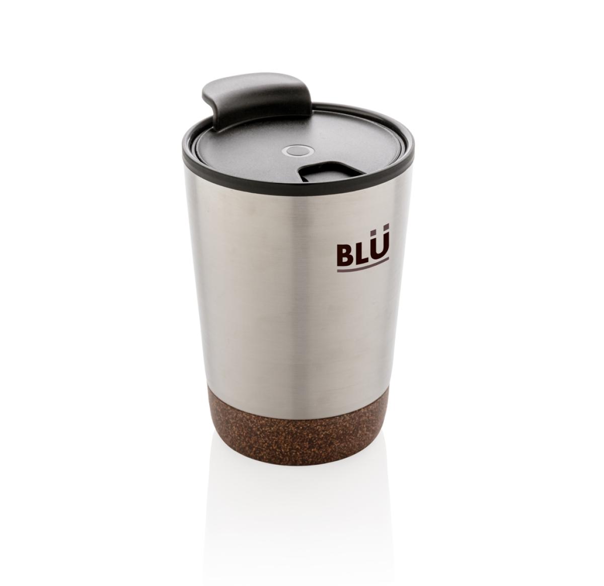 Start your day with your favourite beverage in this double wall coffee mug with recycled plastic inner and unique cork detail. Keeps your drinks warm for up to 3h and cold up to 6h. Made with GRS certified recycled materials. The inner is made from 100% GRS certified PP. GRS certification ensures a completely certified supply chain of the recycled materials. Total recycled content: 52% based on total item weight. BPA free. Capacity 300ml. Including FSC??-certified kraft packaging.