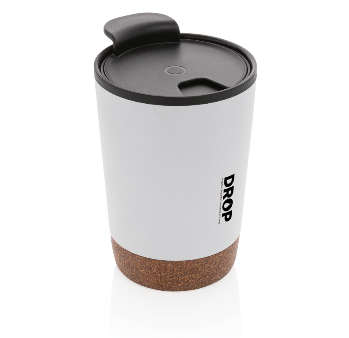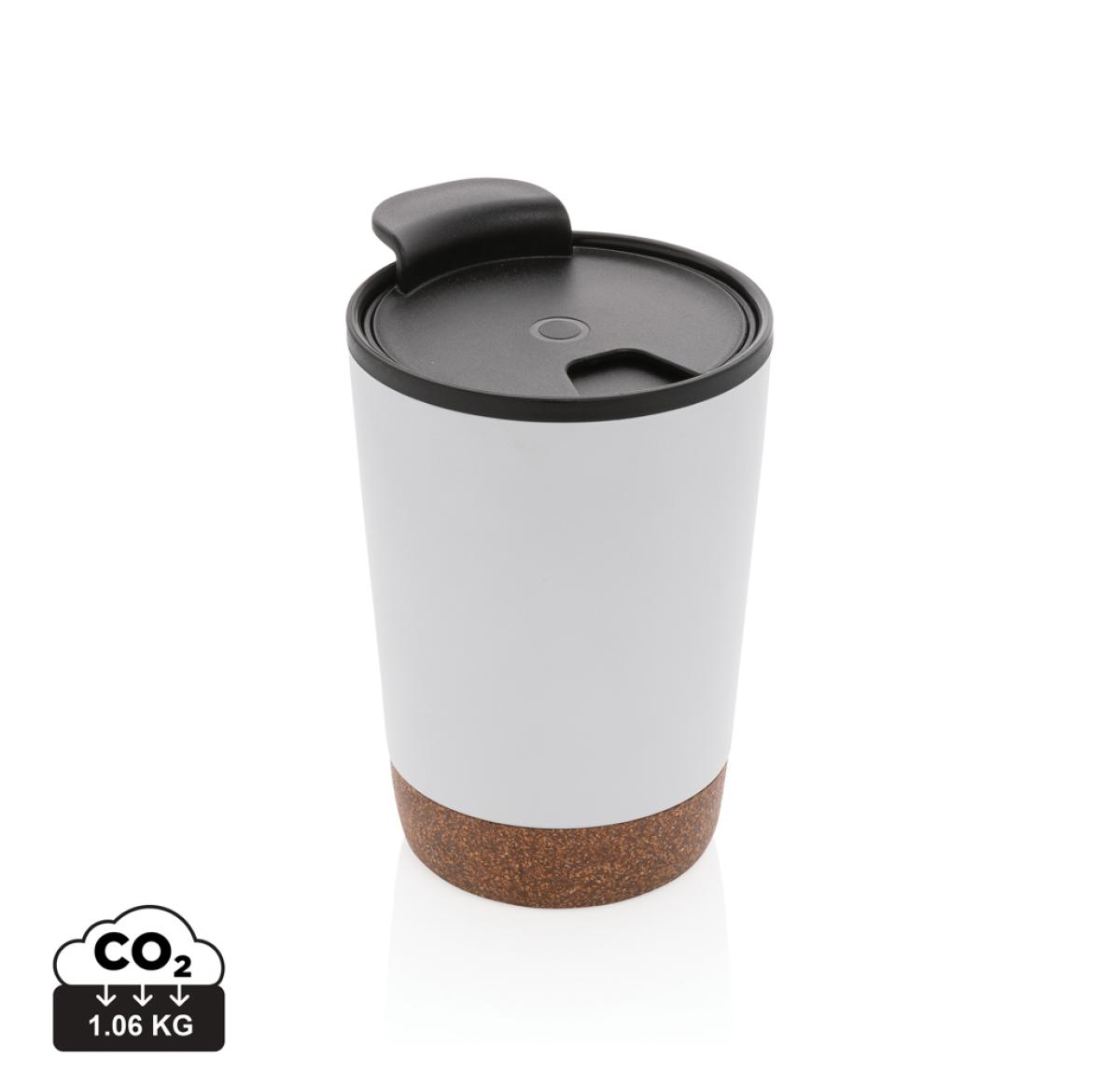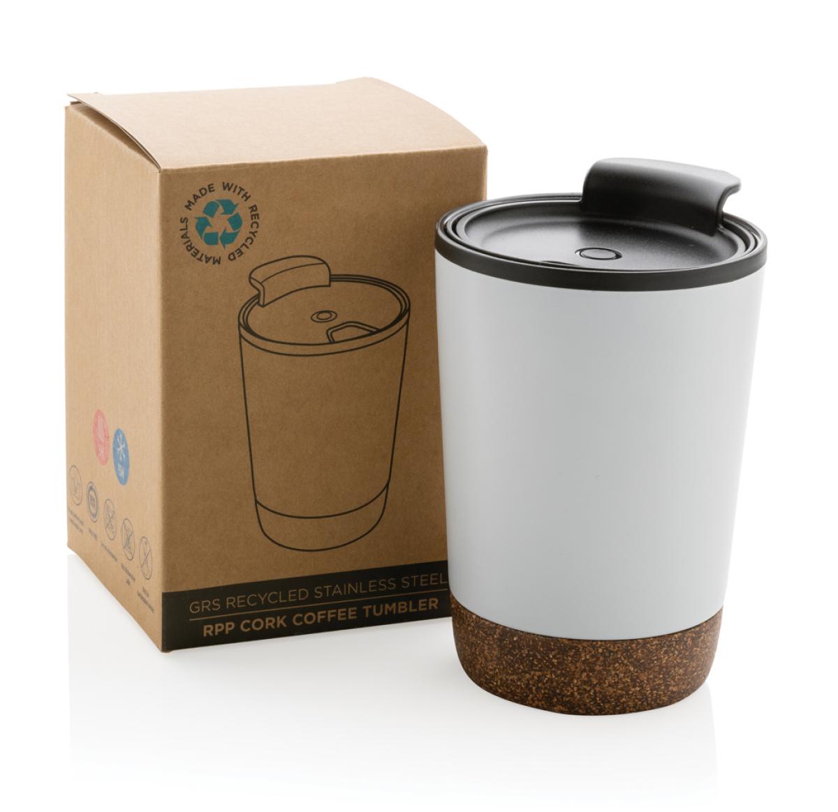 Start your day with your favourite beverage in this double wall coffee mug with recycled plastic inner and unique cork detail. Keeps your drinks warm for up to 3h and cold up to 6h. Made with GRS certified recycled materials. The inner is made from 100% GRS certified PP. GRS certification ensures a completely certified supply chain of the recycled materials. Total recycled content: 52% based on total item weight. BPA free. Capacity 300ml. Including FSC??-certified kraft packaging.