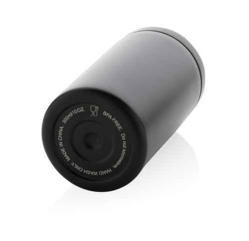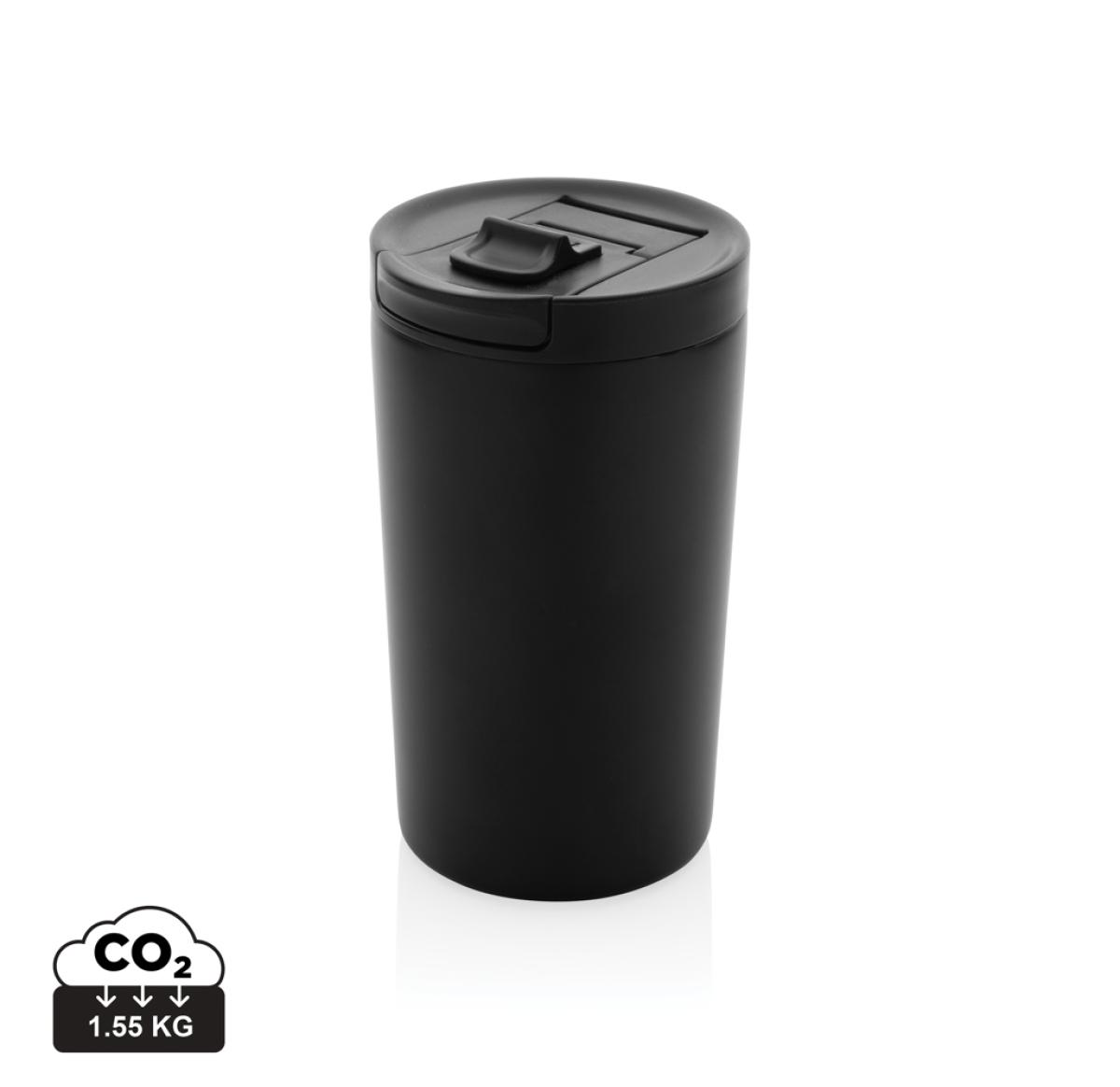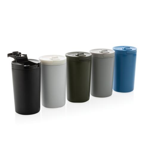 This double wall vacuum leakproof lock mug is the perfect size for your beverage. It's leakproof sealed flip lid is designed for easy open/close and on-the-go use. Vacuum insulation keeps beverages hot for up to 5 hours and cold for up to 15 hours. Made with RCS (Recycled Claim Standard) certified recycled materials. RCS certification ensures a completely certified supply chain of the recycled materials. Total recycled content: 80% based on total item weight. Capacity 300ml. BPA free.