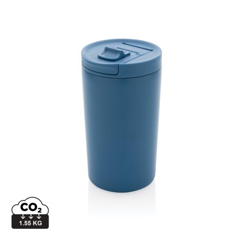 This double wall vacuum leakproof lock mug is the perfect size for your beverage. It's leakproof sealed flip lid is designed for easy open/close and on-the-go use. Vacuum insulation keeps beverages hot for up to 5 hours and cold for up to 15 hours. Made with RCS (Recycled Claim Standard) certified recycled materials. RCS certification ensures a completely certified supply chain of the recycled materials. Total recycled content: 80% based on total item weight. Capacity 300ml. BPA free.