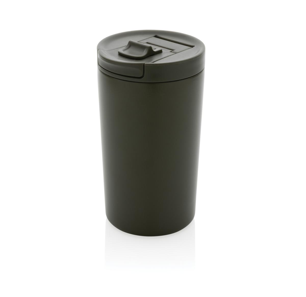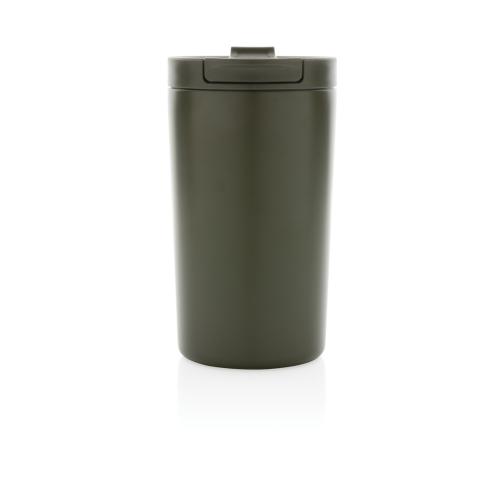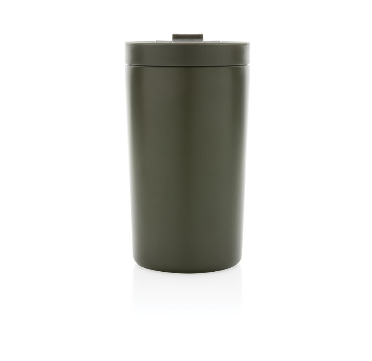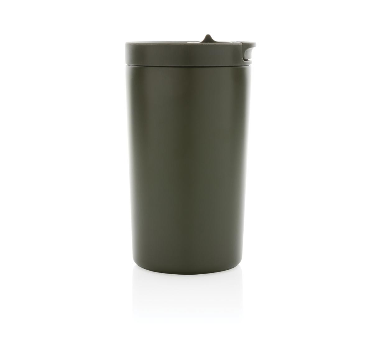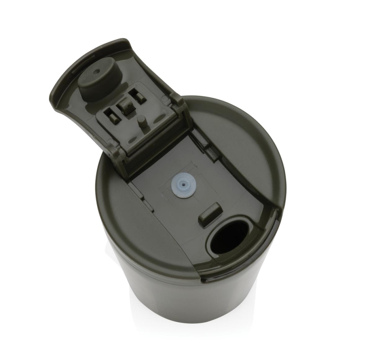 This double wall vacuum leakproof lock mug is the perfect size for your beverage. It's leakproof sealed flip lid is designed for easy open/close and on-the-go use. Vacuum insulation keeps beverages hot for up to 5 hours and cold for up to 15 hours. Made with RCS (Recycled Claim Standard) certified recycled materials. RCS certification ensures a completely certified supply chain of the recycled materials. Total recycled content: 80% based on total item weight. Capacity 300ml. BPA free.