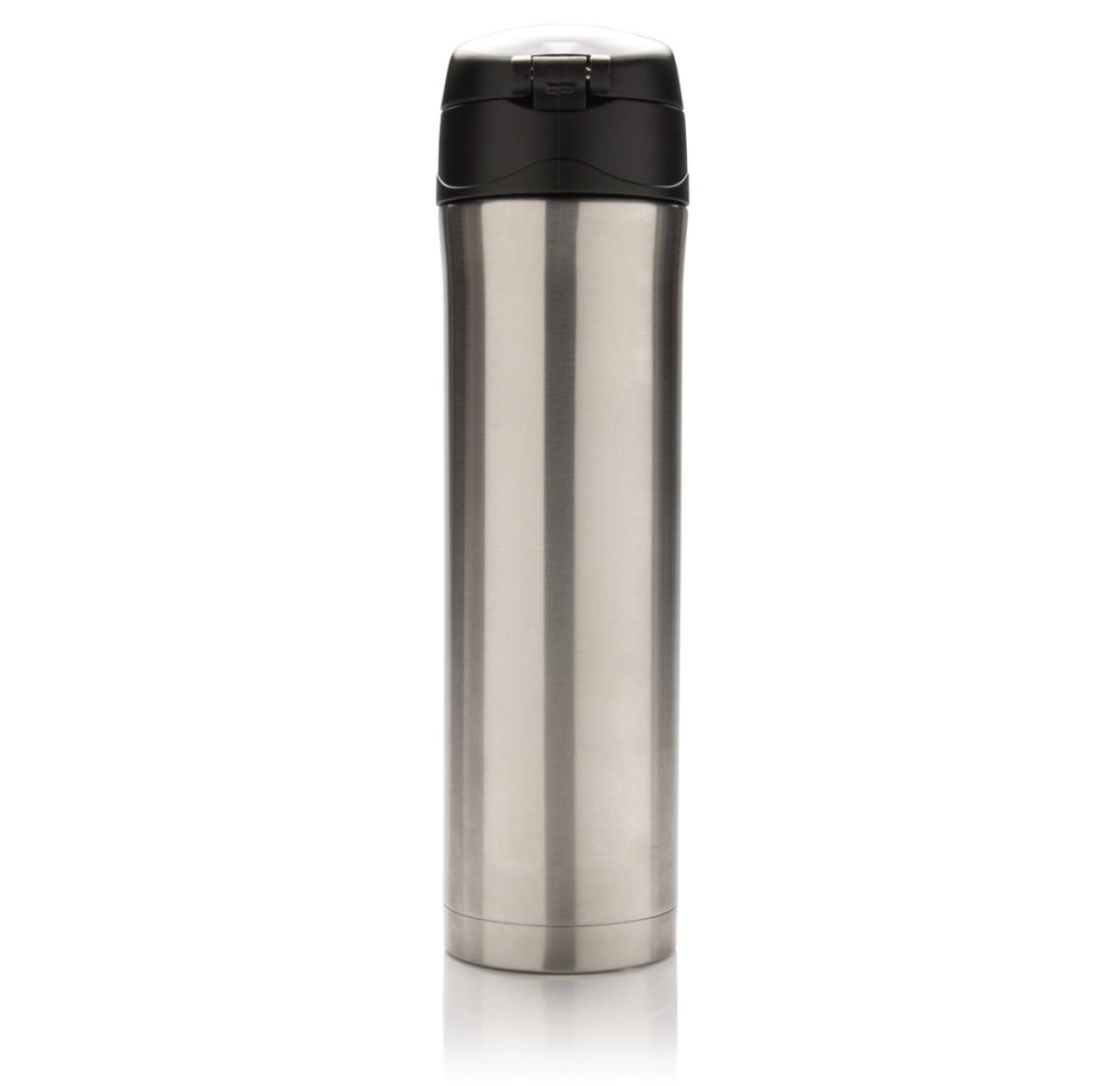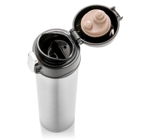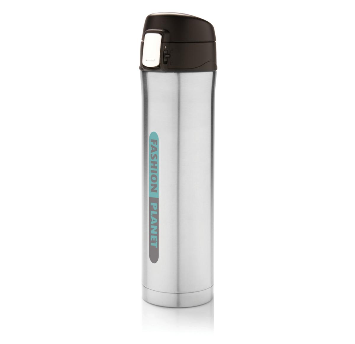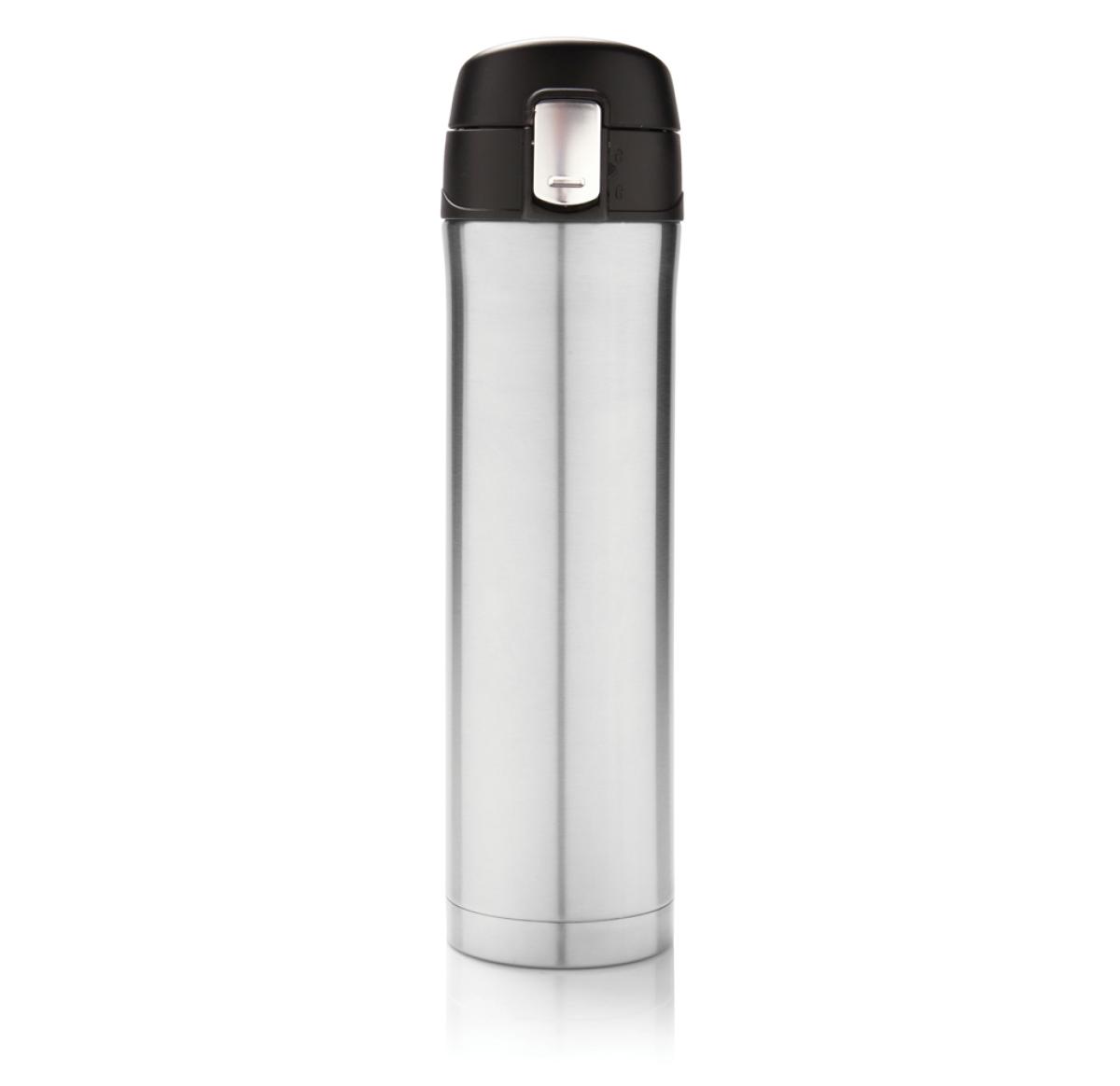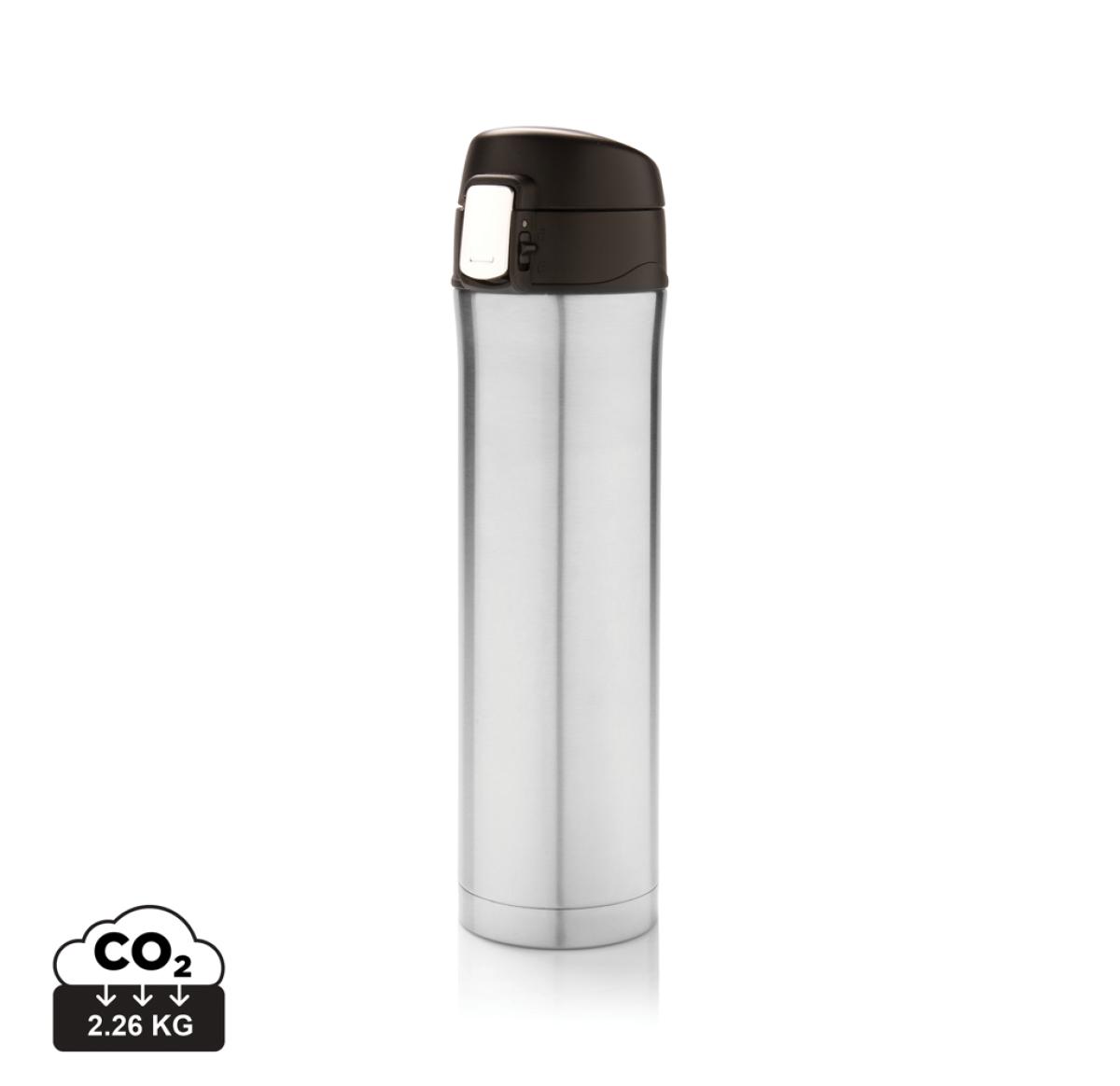 Branded Easy Lock Vacuum Flask Recycled Stainless Steel 450ml Silver