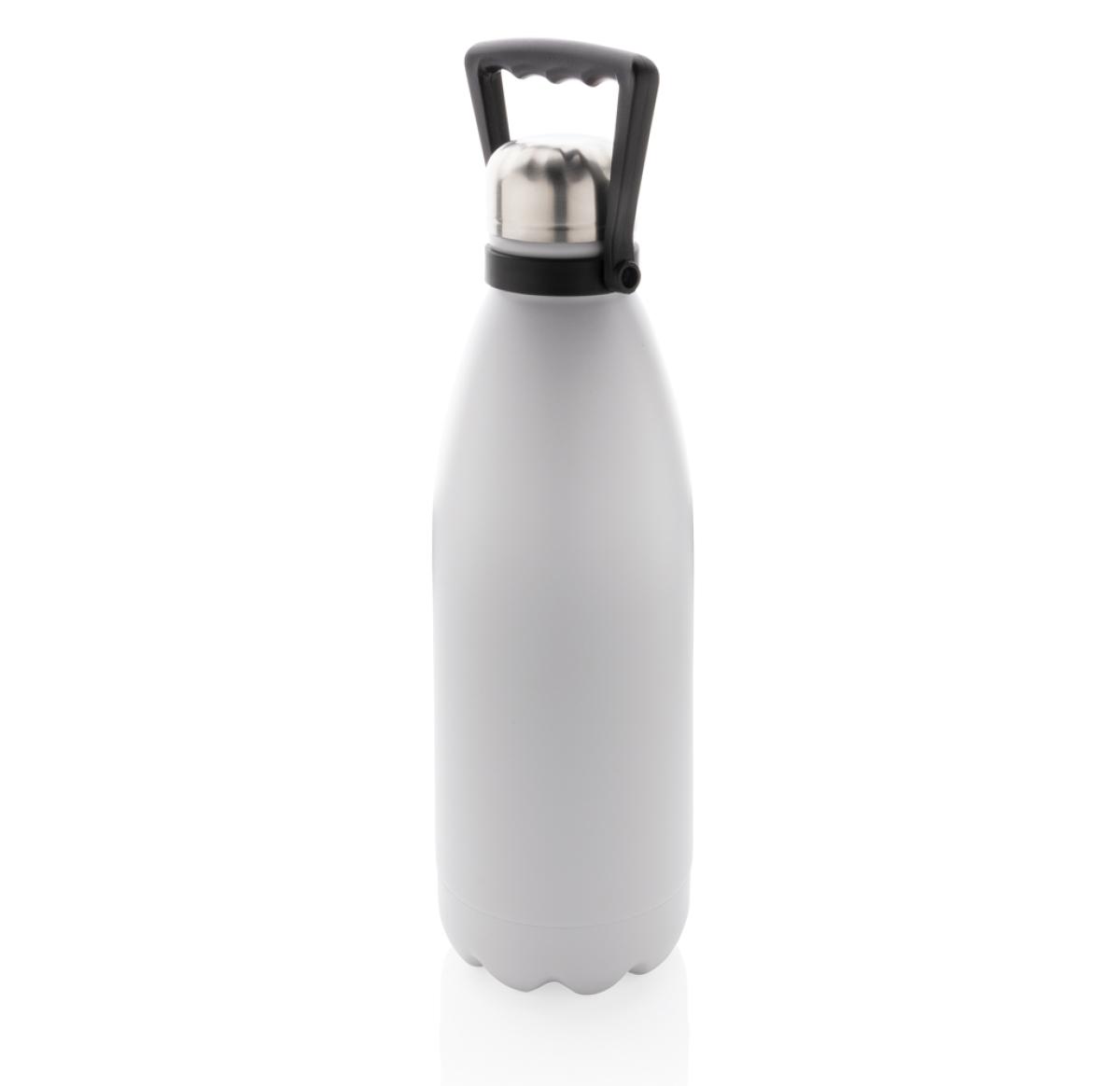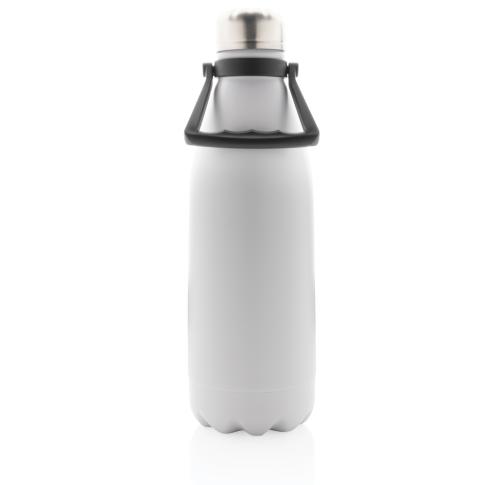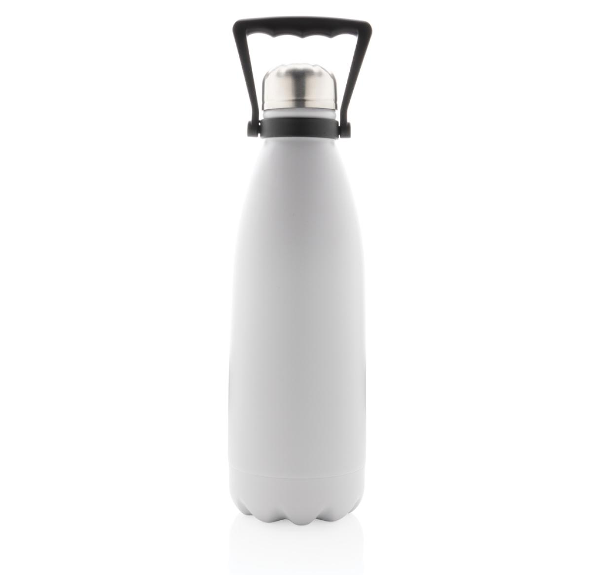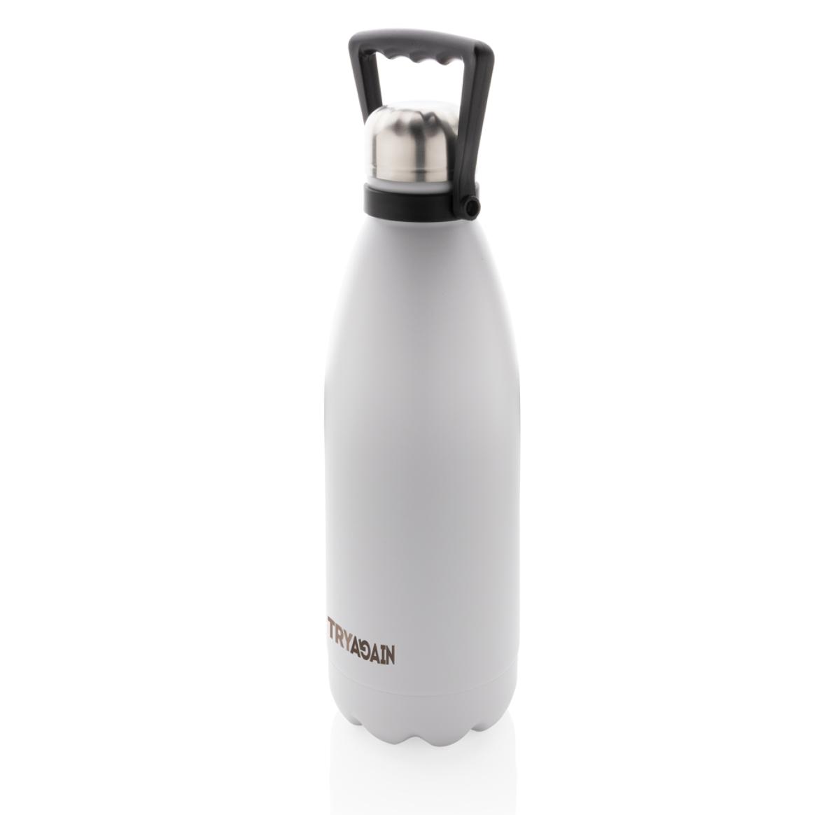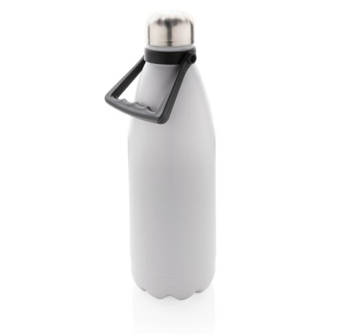 Take your favourite drinks everywhere in this large double wall stainless steel bottle. With its large capacity of 1.5 litres, you are assured to have plenty to drink and the bottle keeps your beverages hot for up to 5 hours or cold for up to 15 hours. The bottle has a beautiful powder coated finish and a convenient handle for easy carrying. Made with RCS (Recycled Claim Standard) certified recycled materials. RCS certification ensures a completely certified supply chain of the recycled materials. Total recycled content: 88% based on total item weight. Capacity 1500ml. BPA free. Including FSC??-certified kraft packaging.