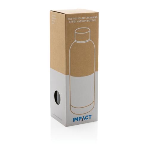 Perfect for all-day hydration, the Impact RCS stainless steel double wall vacuum bottle keeps you refreshed throughout the day. Made of durable recycled stainless steel. Featuring a minimalistic but stylish design, you will make an impact anywhere! Keeps your drink warm for up to 5 hours or cold for up to 15 hours. Made with RCS (Recycled Claim Standard) certified recycled materials. RCS certification ensures a completely certified supply chain of the recycled materials. Total recycled content: 80% based on total item weight. BPA free. Capacity 500ml. Including FSC??-certified kraft packaging.
