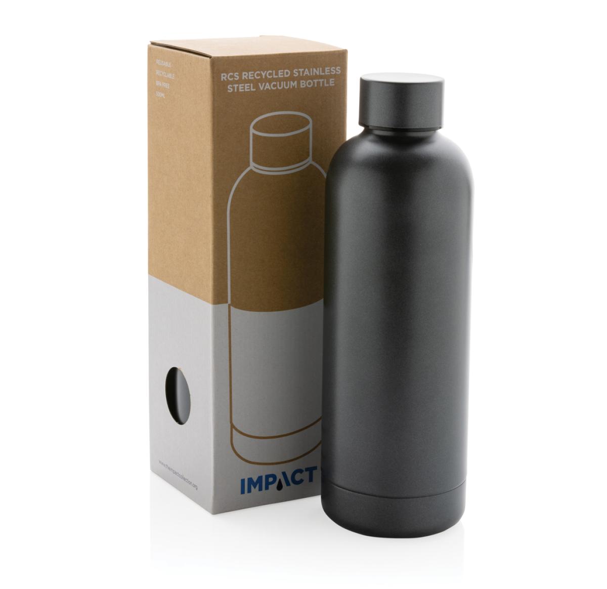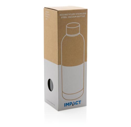 Perfect for all-day hydration, the Impact RCS stainless steel double wall vacuum bottle keeps you refreshed throughout the day. Made of durable recycled stainless steel. Featuring a minimalistic but stylish design, you will make an impact anywhere! Keeps your drink warm for up to 5 hours or cold for up to 15 hours. Made with RCS (Recycled Claim Standard) certified recycled materials. RCS certification ensures a completely certified supply chain of the recycled materials. Total recycled content: 80% based on total item weight. BPA free. Capacity 500ml. Including FSC??-certified kraft packaging.