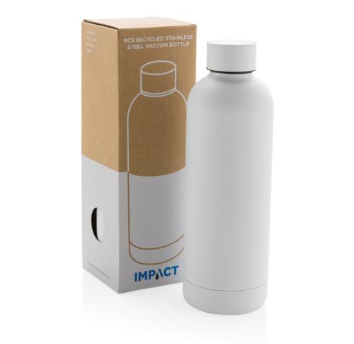 Perfect for all-day hydration, the Impact RCS stainless steel double wall vacuum bottle keeps you refreshed throughout the day. Made of durable recycled stainless steel. Featuring a minimalistic but stylish design, you will make an impact anywhere! Keeps your drink warm for up to 5 hours or cold for up to 15 hours. Made with RCS (Recycled Claim Standard) certified recycled materials. RCS certification ensures a completely certified supply chain of the recycled materials. Total recycled content: 80% based on total item weight. BPA free. Capacity 500ml. Including FSC??-certified kraft packaging.