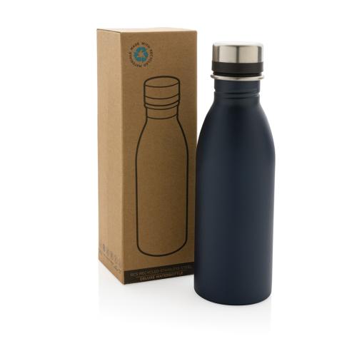 This perfect size and lightweight reusable bottle is made from 18/8 durable recycled stainless steel. Leakproof and perfect for everyday carrying and hydration. Recommended for cold water only. Made with RCS (Recycled Claim Standard) certified recycled materials. RCS certification ensures a completely certified supply chain of the recycled materials. Total recycled content: 80% based on total item weight. BPA free. Capacity 500ml. Including FSC??-certified kraft packaging.