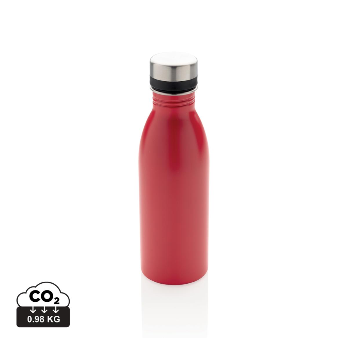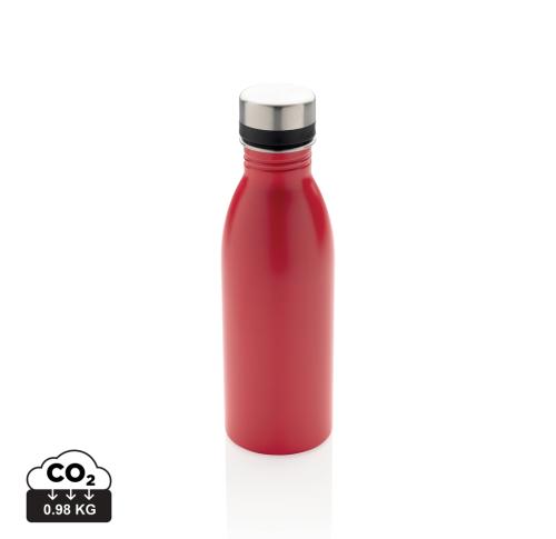 This perfect size and lightweight reusable bottle is made from 18/8 durable recycled stainless steel. Leakproof and perfect for everyday carrying and hydration. Recommended for cold water only. Made with RCS (Recycled Claim Standard) certified recycled materials. RCS certification ensures a completely certified supply chain of the recycled materials. Total recycled content: 80% based on total item weight. BPA free. Capacity 500ml. Including FSC??-certified kraft packaging.