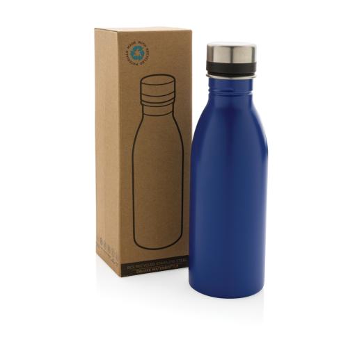 This perfect size and lightweight reusable bottle is made from 18/8 durable recycled stainless steel. Leakproof and perfect for everyday carrying and hydration. Recommended for cold water only. Made with RCS (Recycled Claim Standard) certified recycled materials. RCS certification ensures a completely certified supply chain of the recycled materials. Total recycled content: 80% based on total item weight. BPA free. Capacity 500ml. Including FSC??-certified kraft packaging.