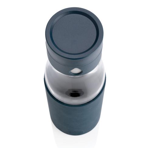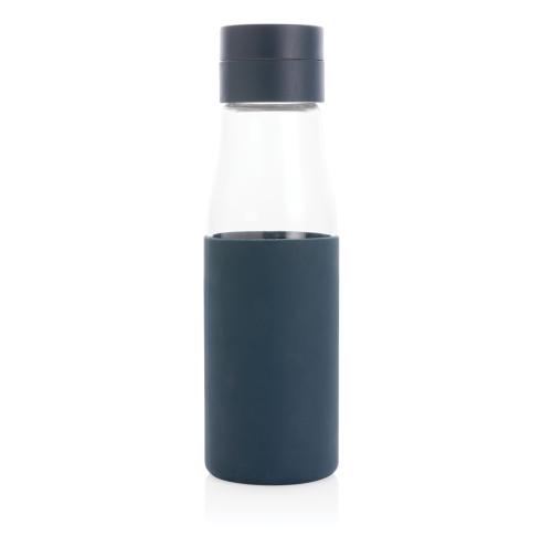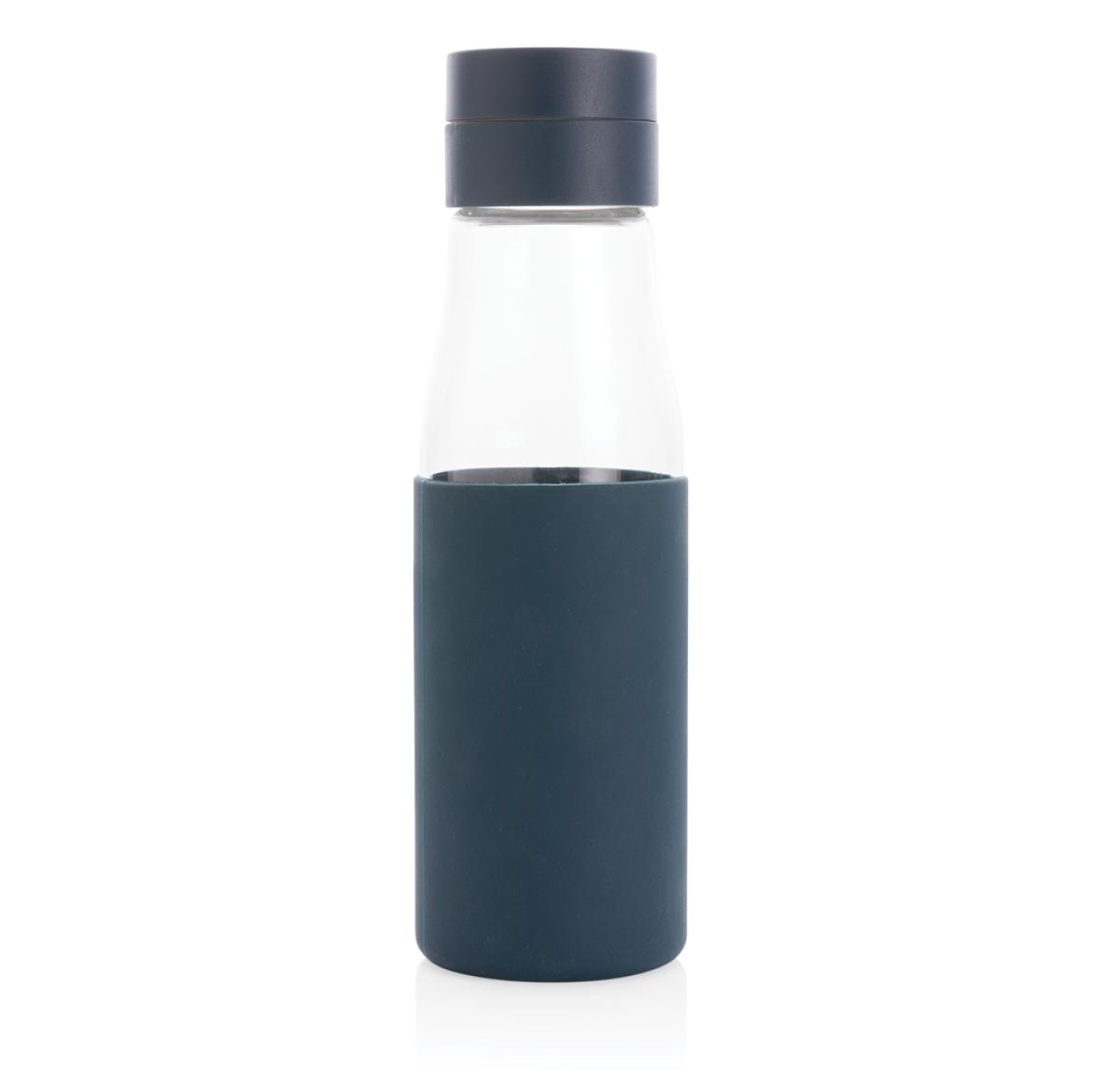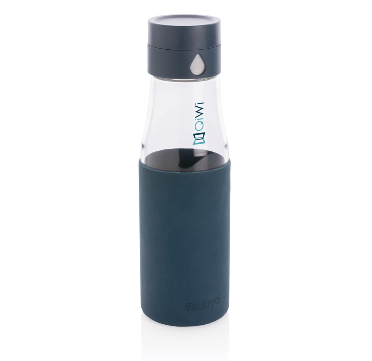 Ukiyo Glass Hydration Tracking Water Bottle With Sleeve Blue