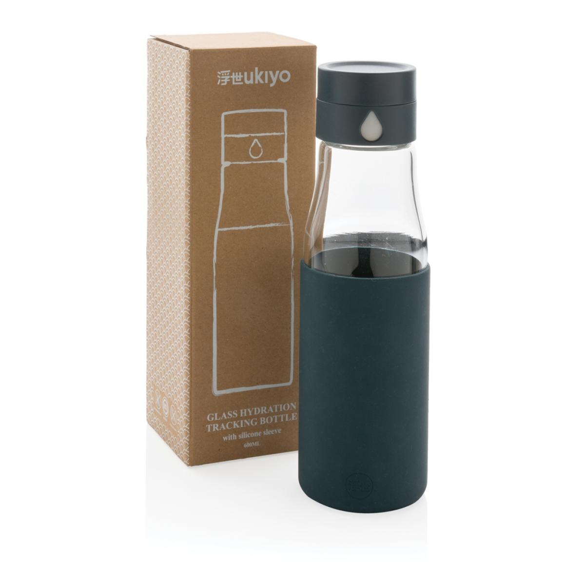 Track your daily hydration goals with this cleverly designed Ukiyo borosilicate glass 600ml water bottle. The lid displays a bigger water drop each time you refill and twist the collar so you can easily keep count of the number of bottles you drink. The body is dishwasher safe. Leakproof. Registered design??