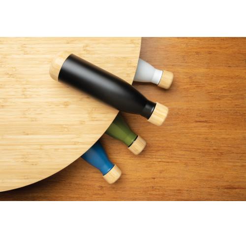 When you're looking forward to your favourite beverage, you can count on this vacuum stainless steel bottle. Whether you're sitting at your desk or taking a walk you can easily take your bottle with you wherever you go. The bottle features a bamboo lid and bottom accent for some extra style. Capacity 520ml.