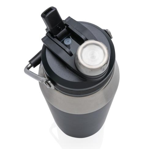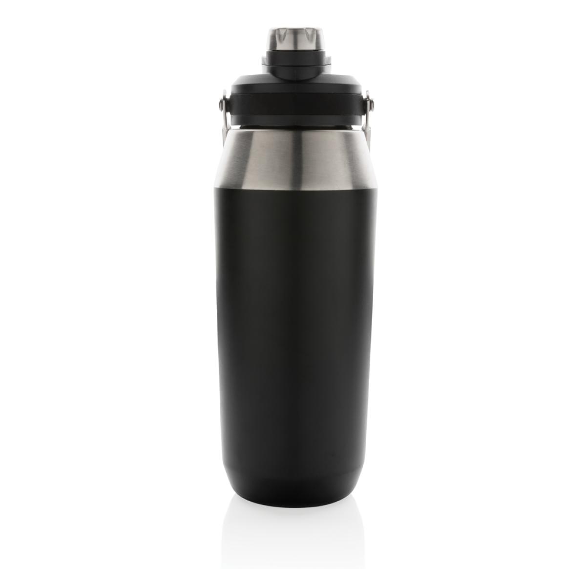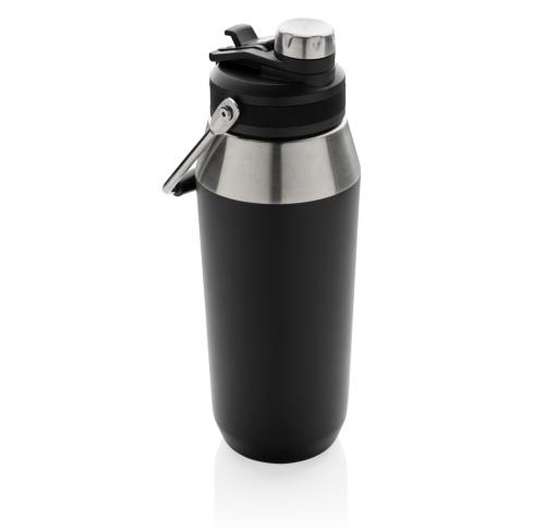 Printed Vacuum Stainless Steel Dual Function Lid Bottles 1L Black