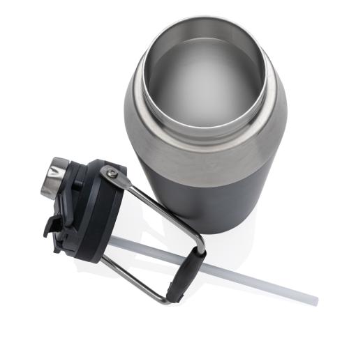 The ultimate stainless steel bottle for on-the-go versatility. The lid has a dual function that has both a flip top straw and screw cap so you can choose how you want to drink from the bottle! The bottles features a top handle for easy carrying. Double wall vacuum insulated stainless steel keeps beverages hot for up to 5 hours or cold for up to 15 hours. A powder coat finish creates a highly durable exterior. Capacity 1000ml. BPA free.