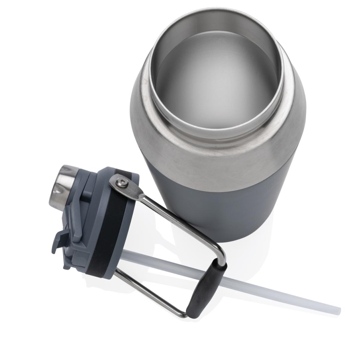 The ultimate stainless steel bottle for on-the-go versatility. The lid has a dual function that has both a flip top straw and screw cap so you can choose how you want to drink from the bottle! The bottles features a top handle for easy carrying. Double wall vacuum insulated stainless steel keeps beverages hot for up to 5 hours or cold for up to 15 hours. A powder coat finish creates a highly durable exterior. Capacity 1000ml. BPA free.
