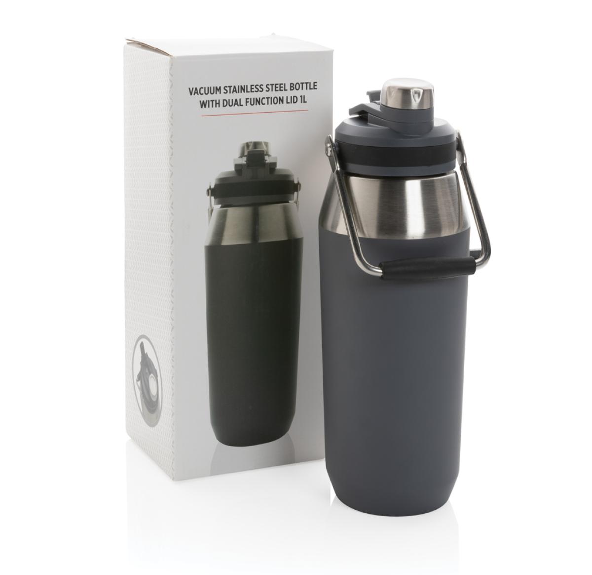Branded Vacuum Stainless Steel Dual Function Lid Bottles 1L Anthracite