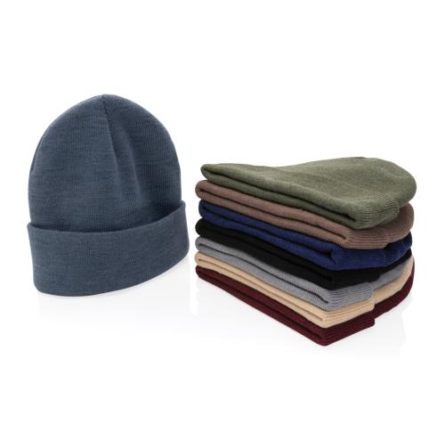A classic fold over beanie for an effortless look and comfortable feel, suited to anyone, that will keep you warm in the cold weather. No greenwashing, but telling a true story about sustainability! This Impact collection is made with AWARE?? tracer. With AWARE??, the use of genuine sustainable fabric materials and water reduction impact claims are guaranteed, by using the AWARE disruptive physical tracer and blockchain technology. Save water and use genuine sustainable fabrics. With the focus on water, 2% of proceeds of each Impact product sold will be donated to Water.org. This beanie has saved 5 litres of water! The beanie uses unique Polylana?? yarn. Polylana?? is made from a mixture of virgin and recycled materials to create an innovative fibre with characteristics similar to acrylic or wool fibre. Polylana?? is a low-impact alternative to 100% acrylic fibre using less energy and water. One size fits all.