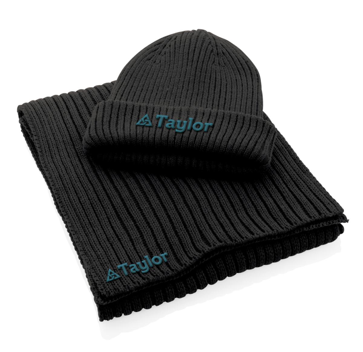 Branded Knitted Scarf 180 X 25cm Impact AWARE™ Polylana® Black