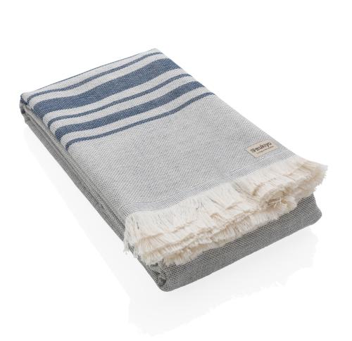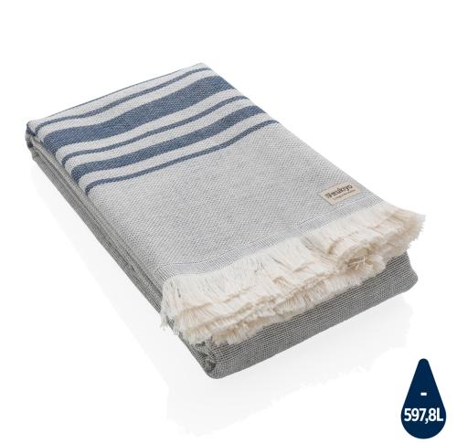 This lightweight, highly absorbent, sand-resistant, and quick dry towel is one of the best sustainable towels out there. Hammam towels are multifunctional: you can also use it as a picnic, baby blanket or as a yoga, beach, and gym towel. Even as a table cloth. Best of all, the thin material makes it ultra-portable and easy to toss in your beach bag, suitcase or over your shoulder. This towel contains 12% recycled cotton and is super soft and silky to the touch. With AWARE?? tracer that validates the genuine use of recycled cotton. Each towel saves 597,8 litres of water. 2% of proceeds of each Impact product sold will be donated to Water.org. Made in Portugal.