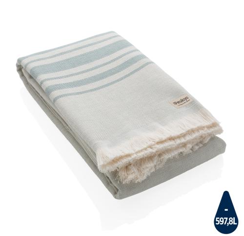 This lightweight, highly absorbent, sand-resistant, and quick dry towel is one of the best sustainable towels out there. Hammam towels are multifunctional: you can also use it as a picnic, baby blanket or as a yoga, beach, and gym towel. Even as a table cloth. Best of all, the thin material makes it ultra-portable and easy to toss in your beach bag, suitcase or over your shoulder. This towel contains 12% recycled cotton and is super soft and silky to the touch. With AWARE?? tracer that validates the genuine use of recycled cotton. Each towel saves 597,8 litres of water. 2% of proceeds of each Impact product sold will be donated to Water.org. Made in Portugal.