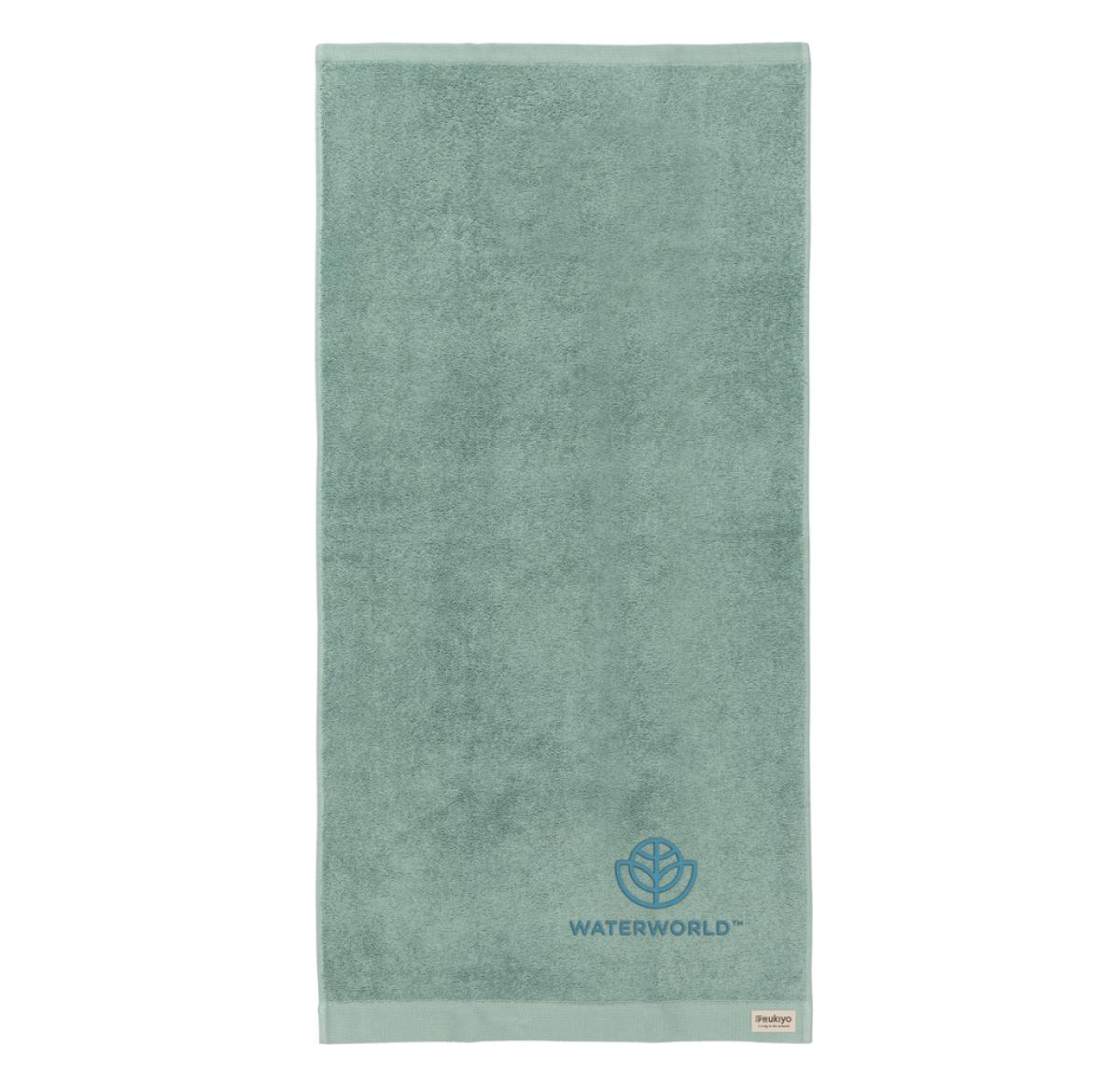 These spa-quality sustainable bath towels of 500 grams are delightfully thick, silky, and super soft to your skin. The luxurious Ukiyo towels are ultra-soft, quick-drying, and offer great absorbency. This towel contains 30% recycled cotton and is super soft and silky to the touch. With AWARE?? tracer that validates the genuine use of recycled cotton. Each towel saves 741,4 litres of water. 2% of proceeds of each Impact product sold will be donated to Water.org. Machine washable. Made in Portugal