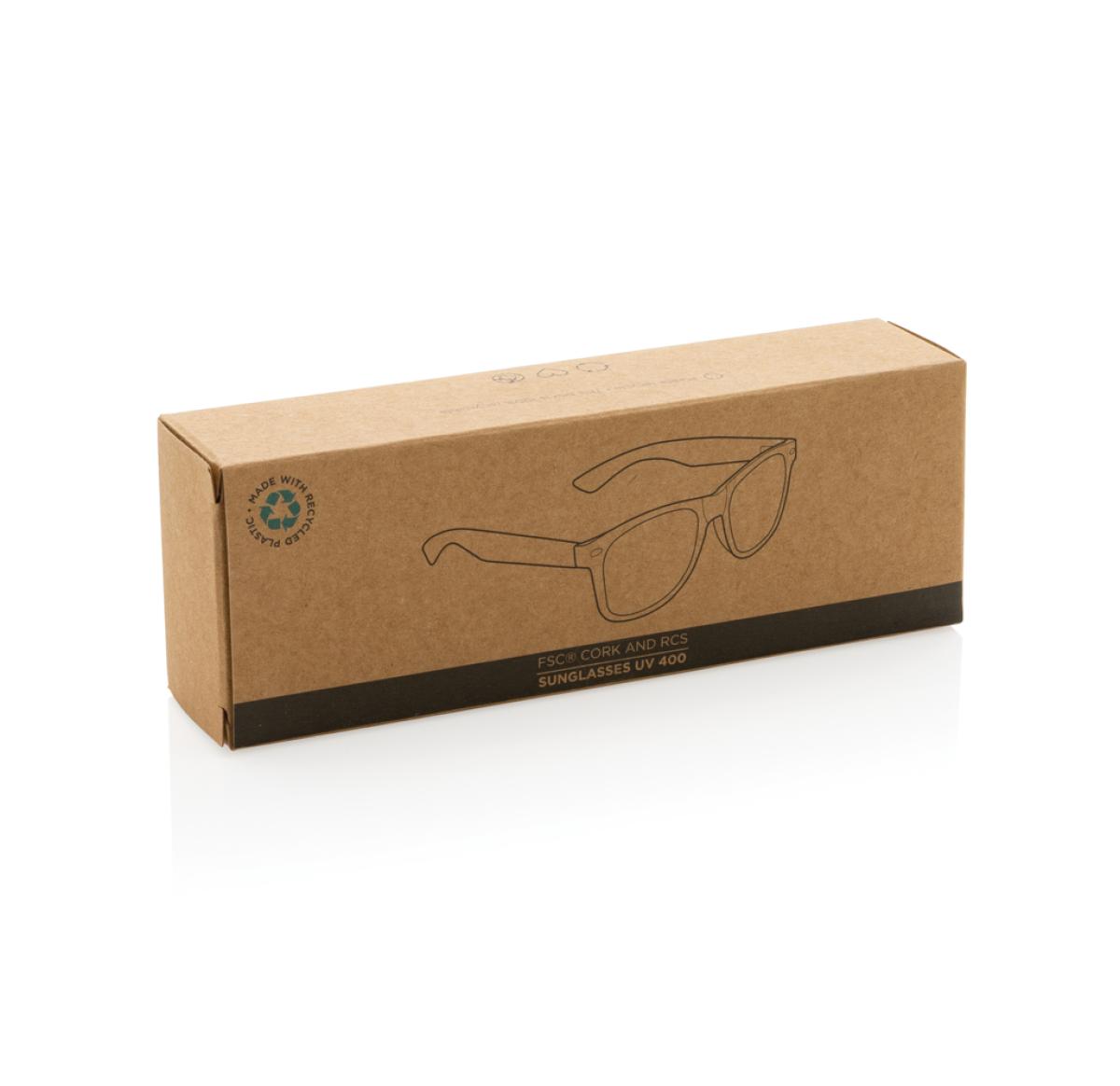 Sunglasses made with GRS certified recycled PC frame. Recycled content of frame is 100%. Total recycled content: 68% based on total item weight. GRS certification ensures a completely certified supply chain of the recycled materials. With FSC?? cork detail on the outer temples. The lenses are smokey acrylic and conform EN ISO 12312-1, UV 400 and CAT 3. Packed in a FSC?? kraft packaging