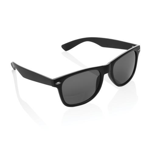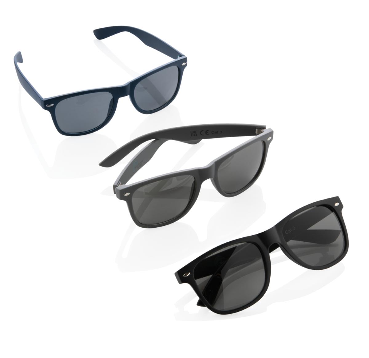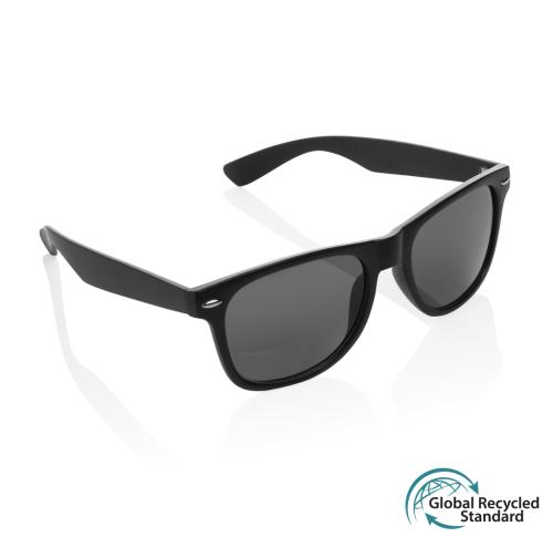 High quality sunglasses made with GRS certified recycled PC frame. Recycled content of frame is 100%. Total recycled content: 65% based on total item weight. GRS certification ensures a completely certified supply chain of the recycled materials. The lenses are smokey acrylic and conform to UV 400 and CAT 3. Packed in a kraft gift box.