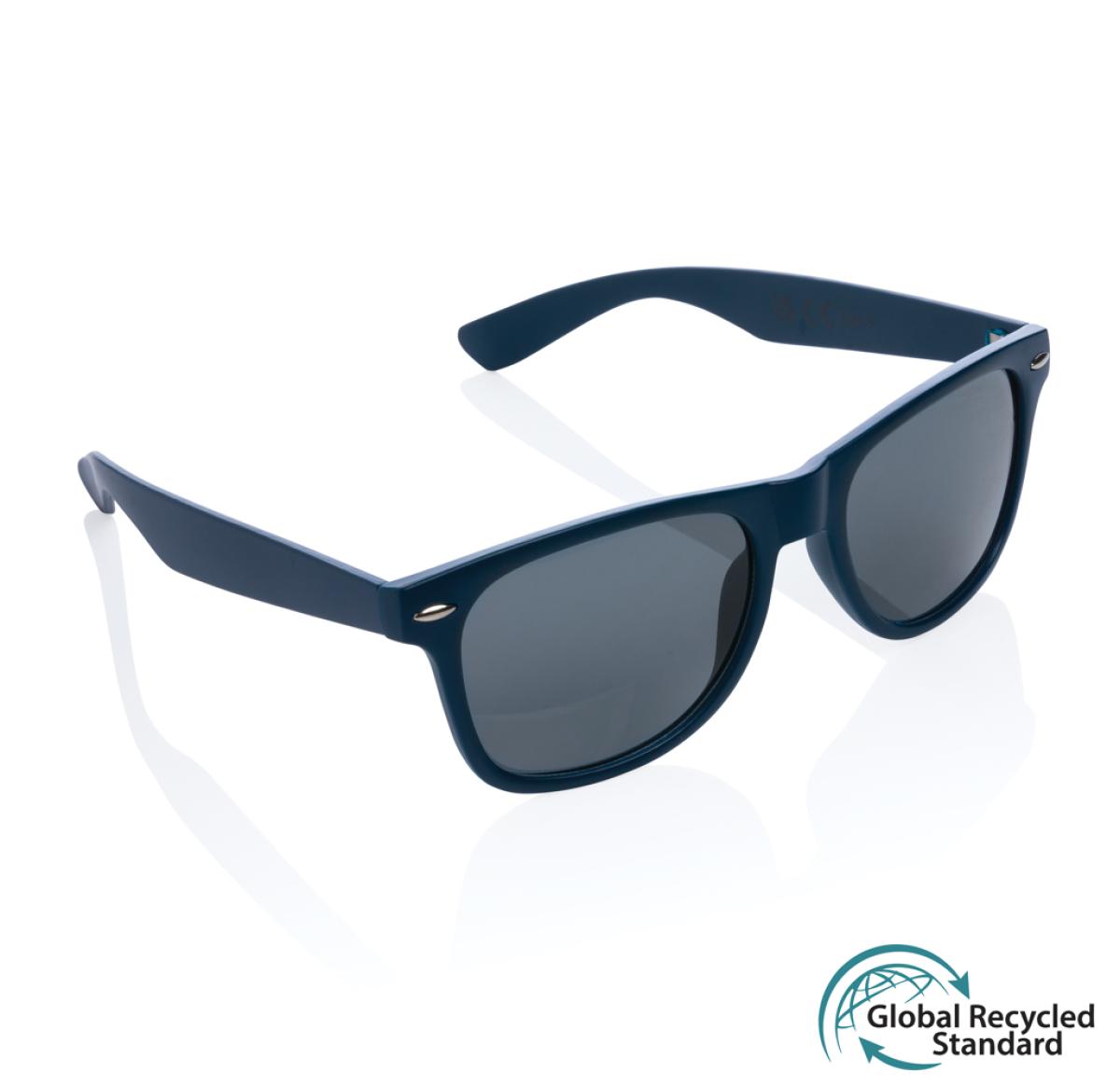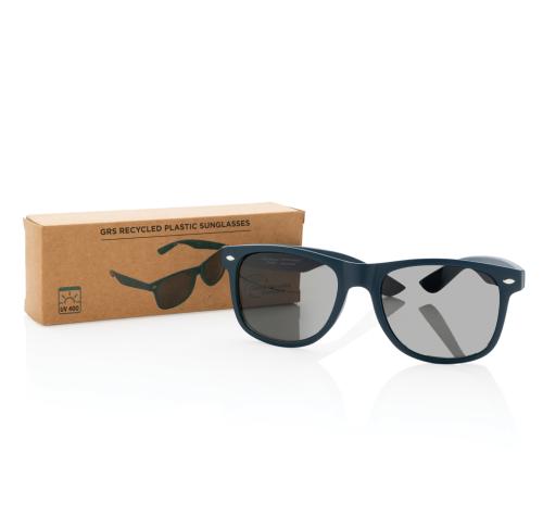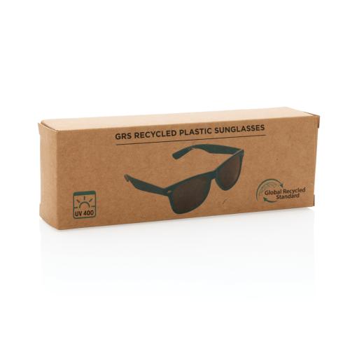 High quality sunglasses made with GRS certified recycled PC frame. Recycled content of frame is 100%. Total recycled content: 65% based on total item weight. GRS certification ensures a completely certified supply chain of the recycled materials. The lenses are smokey acrylic and conform to UV 400 and CAT 3. Packed in a kraft gift box.