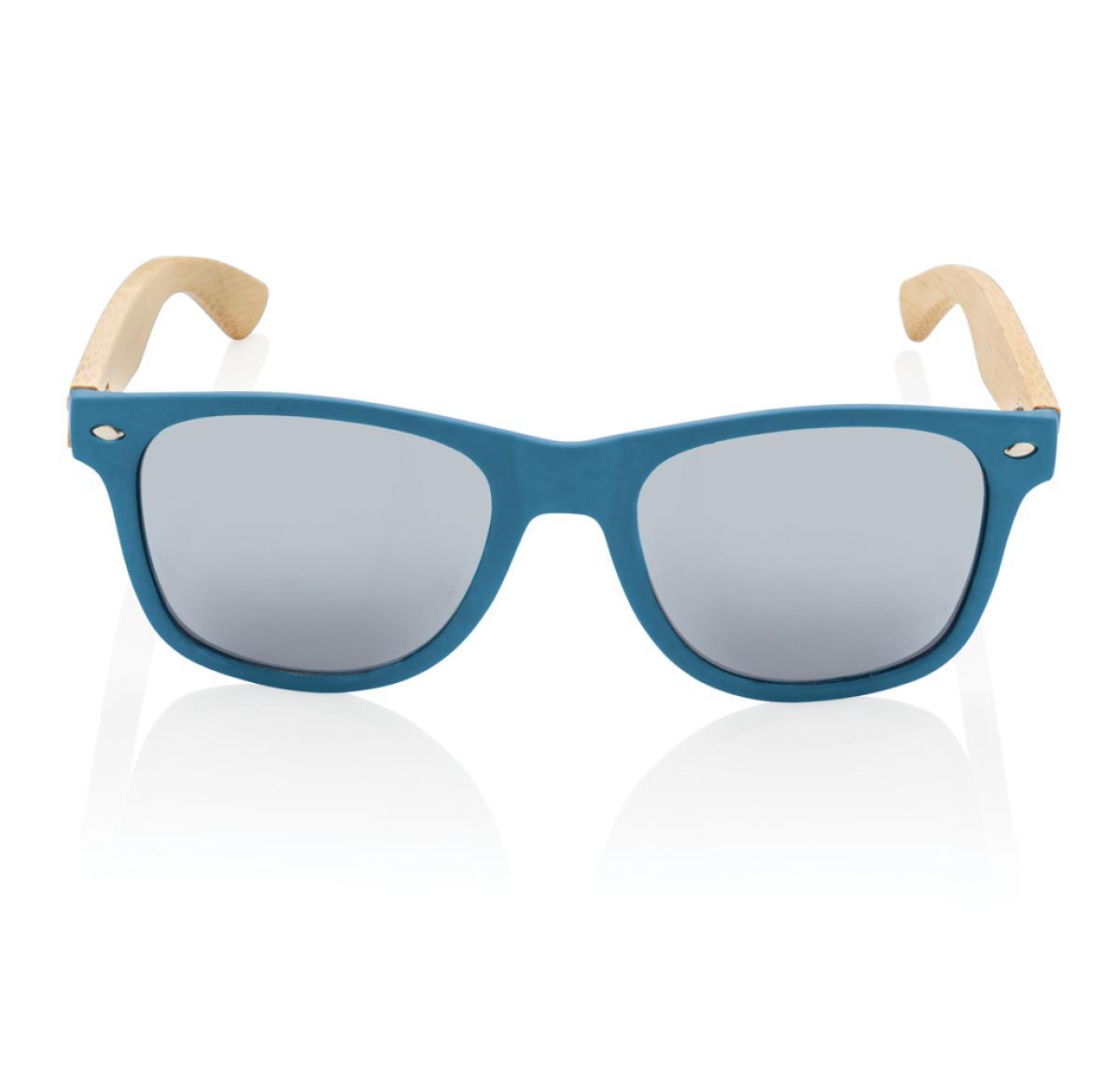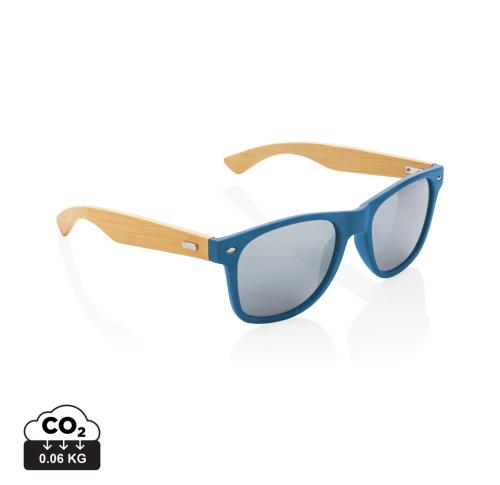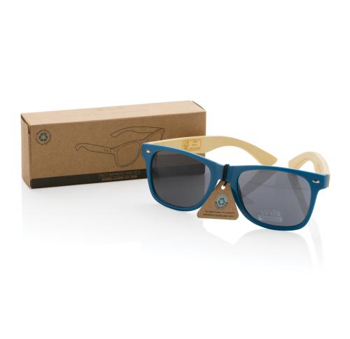 Promotional Branded Eco Bamboo And RCS Recycled Plastic Sunglasses - Blue
