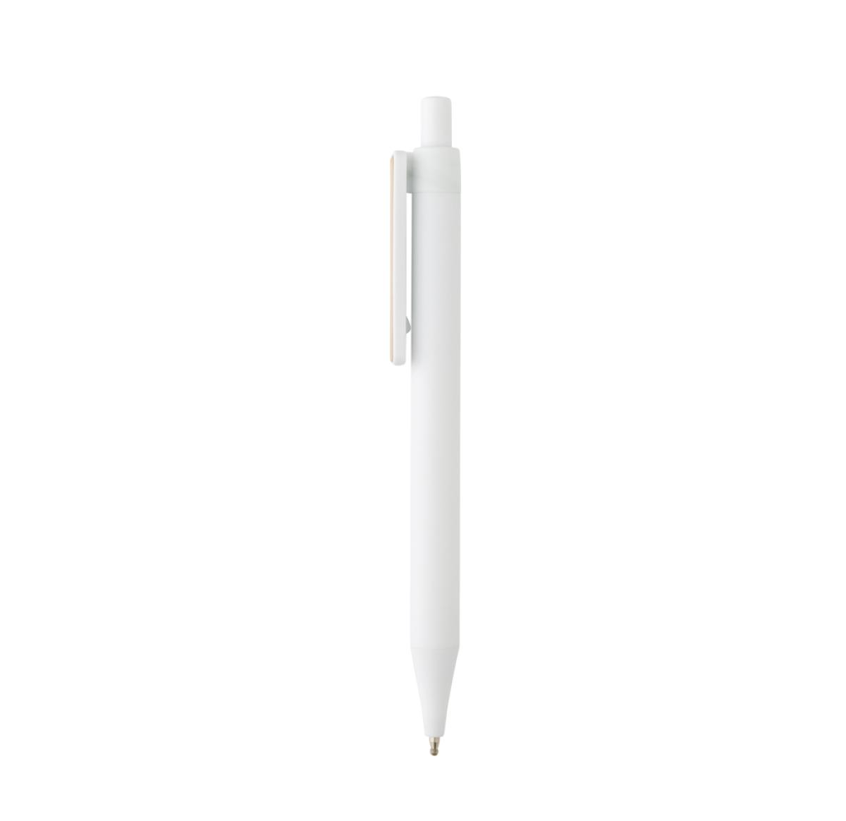 Reycycled Branded Pen With Bamboo Clip GRS RABS White