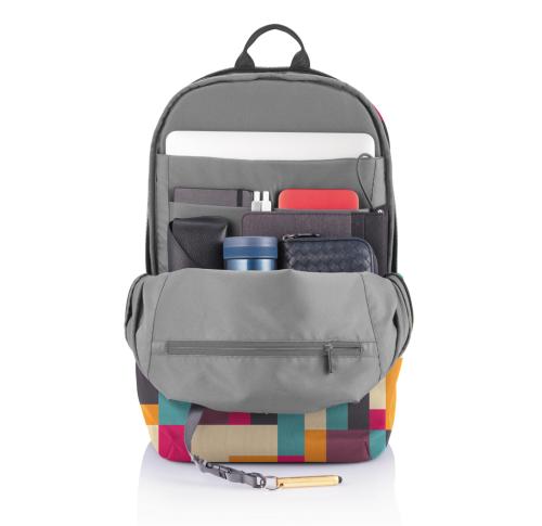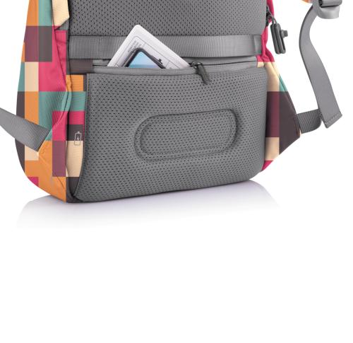 For university, school, work or your next trip, the Bobby Soft Backpack is ready! The iconic Bobby anti-theft design with hidden RFID protected pockets, no front access and hidden zippers is now complemented with a safe zipper puller on the main compartment. In the main compartment, you can easily organise your gear with a padded 15.6" laptop compartment, notebook pocket, smart pockets and a keychain clip. The top of the backpack is expandable giving additional space. This backpack is also equipped with an integrated USB charging port and water repellent material. Made from R-pet materials and AWARE?? tracer. With AWARE??, the use of genuine recycled fabric materials and water reduction is guaranteed, by using the AWARE disruptive physical tracer and blockchain technology. Each Bobby Soft saves 23L of water and reuses 39 plastic bottles. Registered design??