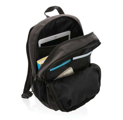 The Impact AWARE?? 300D RPET casual backpack offers plenty of storage. The front zip pocket provides secure small-item storage for quick access. A middle compartment holds 2 open pockets and the main compartment features a 15 inch laptop compartment. Comfortable shoulder straps and 2 outer mesh pockets for your bottles. Perfect for carrying your gym gear or to go on a hike. The exterior is made with100% 300D recycled polyester, the lining is 100% 150D recycled polyester. With AWARE?? tracer that validates the genuine use of recycled materials. Each bag saves 9.2 litres of water and has reused 15.39 0.5L PET bottles. 2% of proceeds of each Impact product sold will be donated to Water.org.