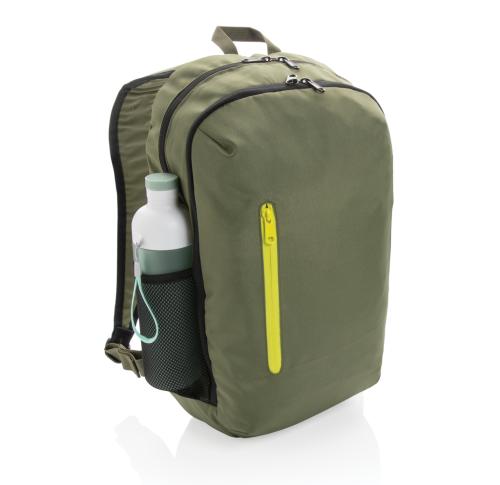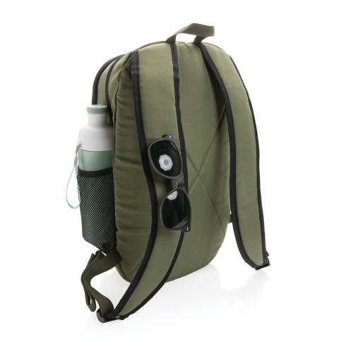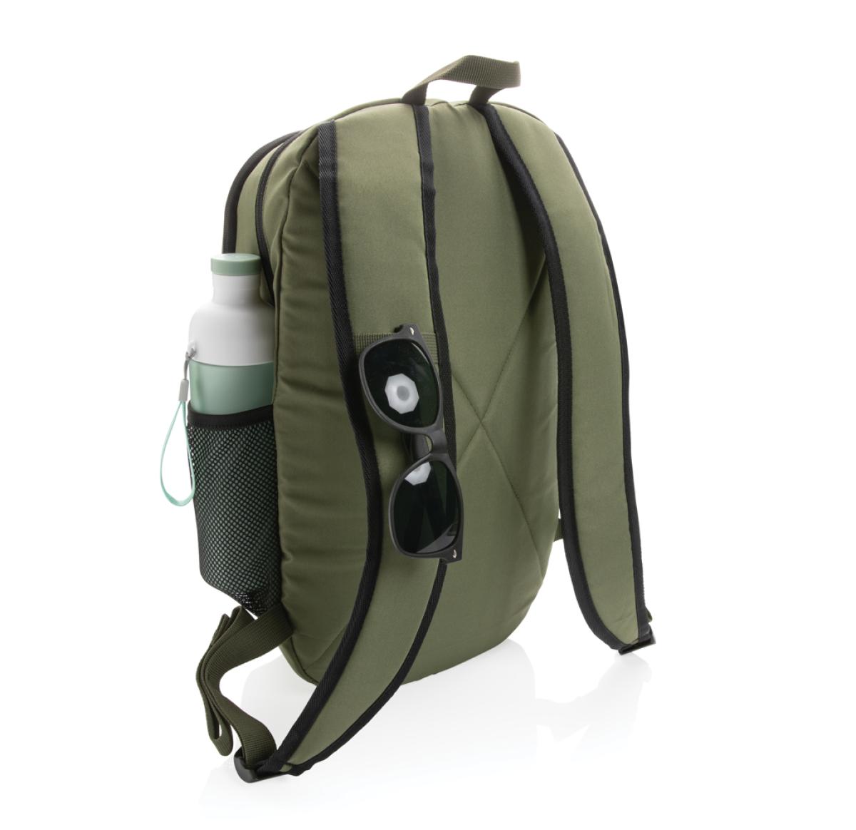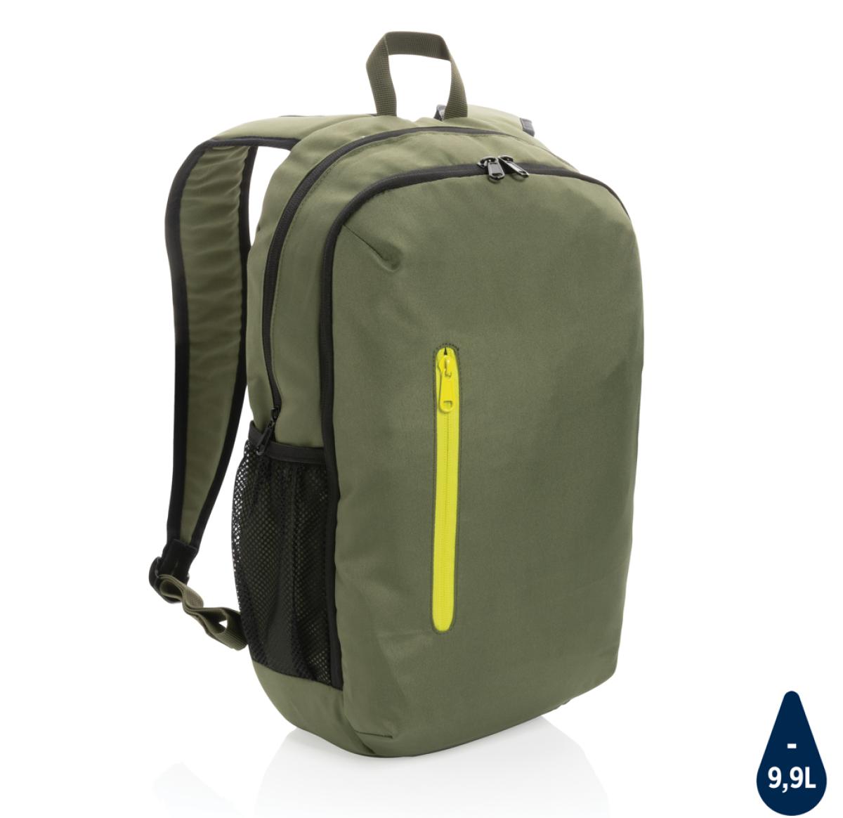 The Impact AWARE?? 300D RPET casual backpack offers plenty of storage. The front zip pocket provides secure small-item storage for quick access. A middle compartment holds 2 open pockets and the main compartment features a 15 inch laptop compartment. Comfortable shoulder straps and 2 outer mesh pockets for your bottles. Perfect for carrying your gym gear or to go on a hike. The exterior is made with100% 300D recycled polyester, the lining is 100% 150D recycled polyester. With AWARE?? tracer that validates the genuine use of recycled materials. Each bag saves 9.2 litres of water and has reused 15.39 0.5L PET bottles. 2% of proceeds of each Impact product sold will be donated to Water.org.