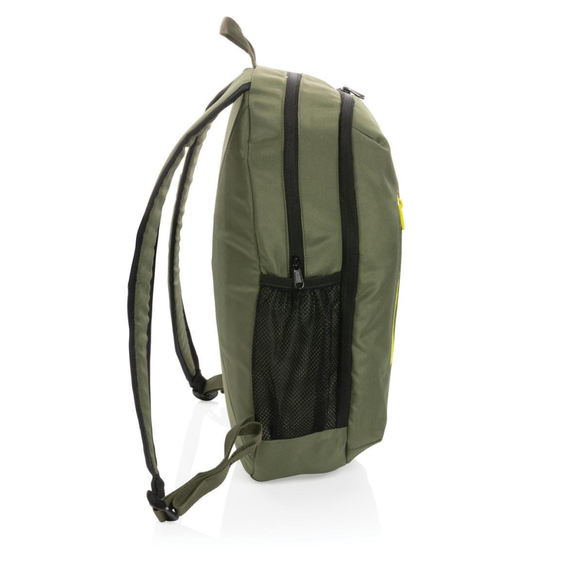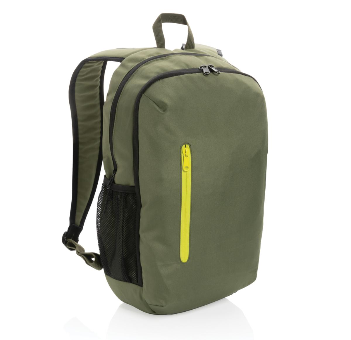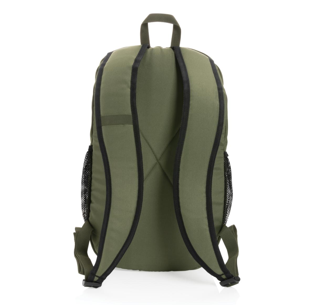 The Impact AWARE?? 300D RPET casual backpack offers plenty of storage. The front zip pocket provides secure small-item storage for quick access. A middle compartment holds 2 open pockets and the main compartment features a 15 inch laptop compartment. Comfortable shoulder straps and 2 outer mesh pockets for your bottles. Perfect for carrying your gym gear or to go on a hike. The exterior is made with100% 300D recycled polyester, the lining is 100% 150D recycled polyester. With AWARE?? tracer that validates the genuine use of recycled materials. Each bag saves 9.2 litres of water and has reused 15.39 0.5L PET bottles. 2% of proceeds of each Impact product sold will be donated to Water.org.
