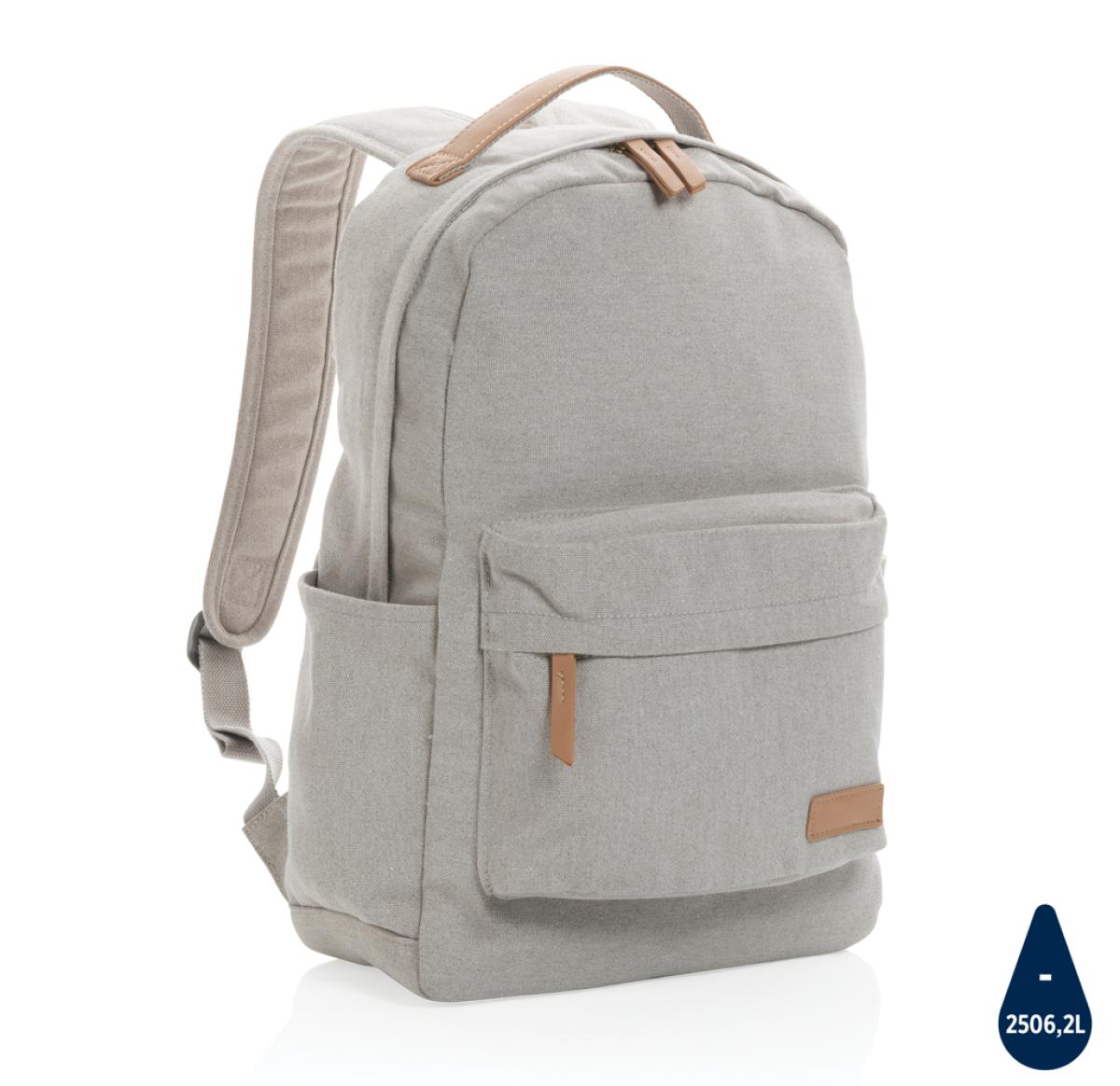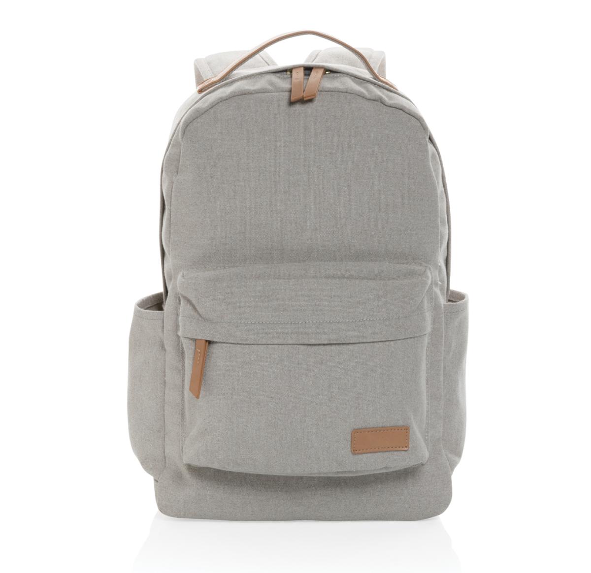 Printed Logo Recycled Canvas Backpacks Grey Impact AWARE™ 16 Oz.