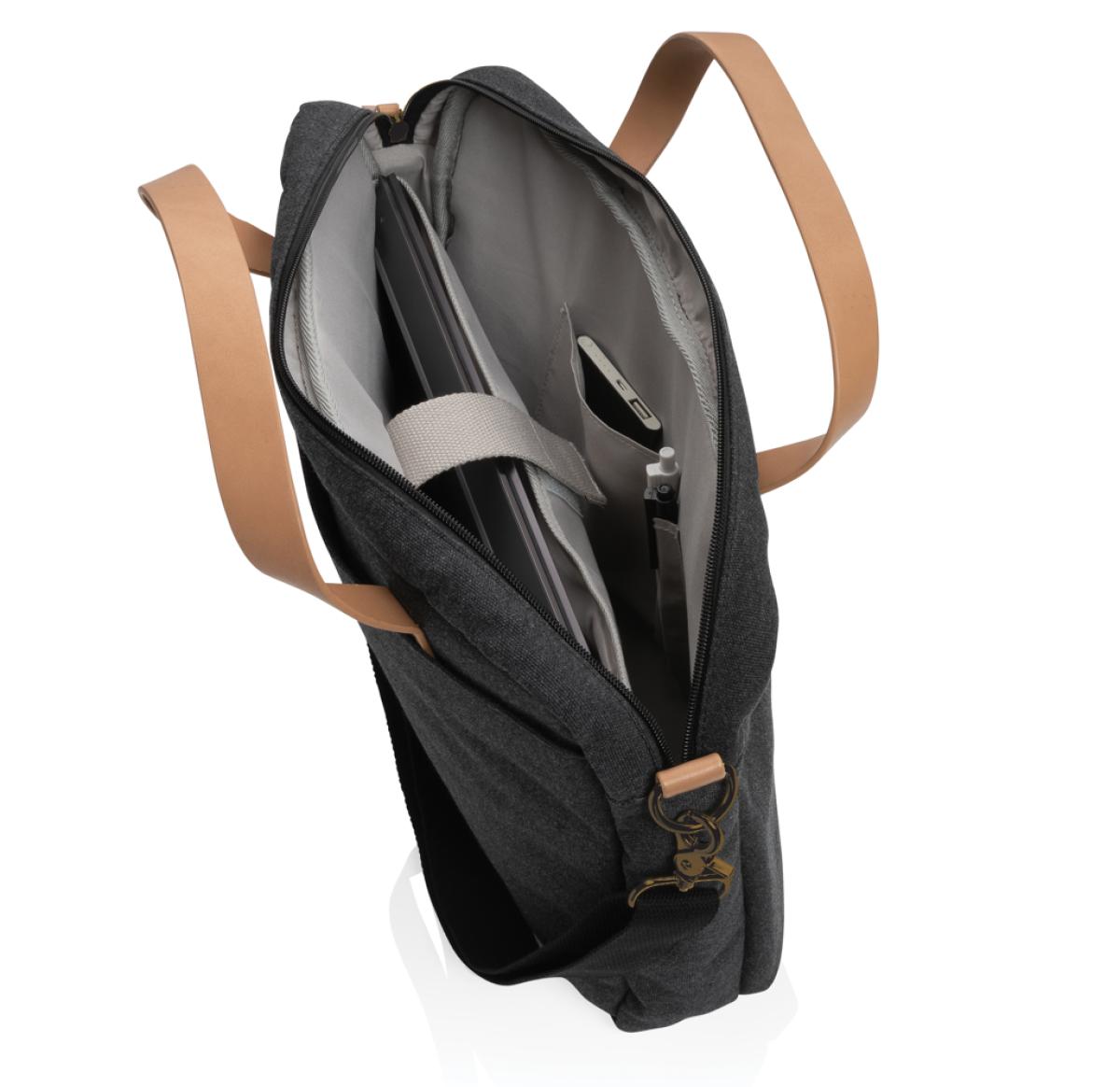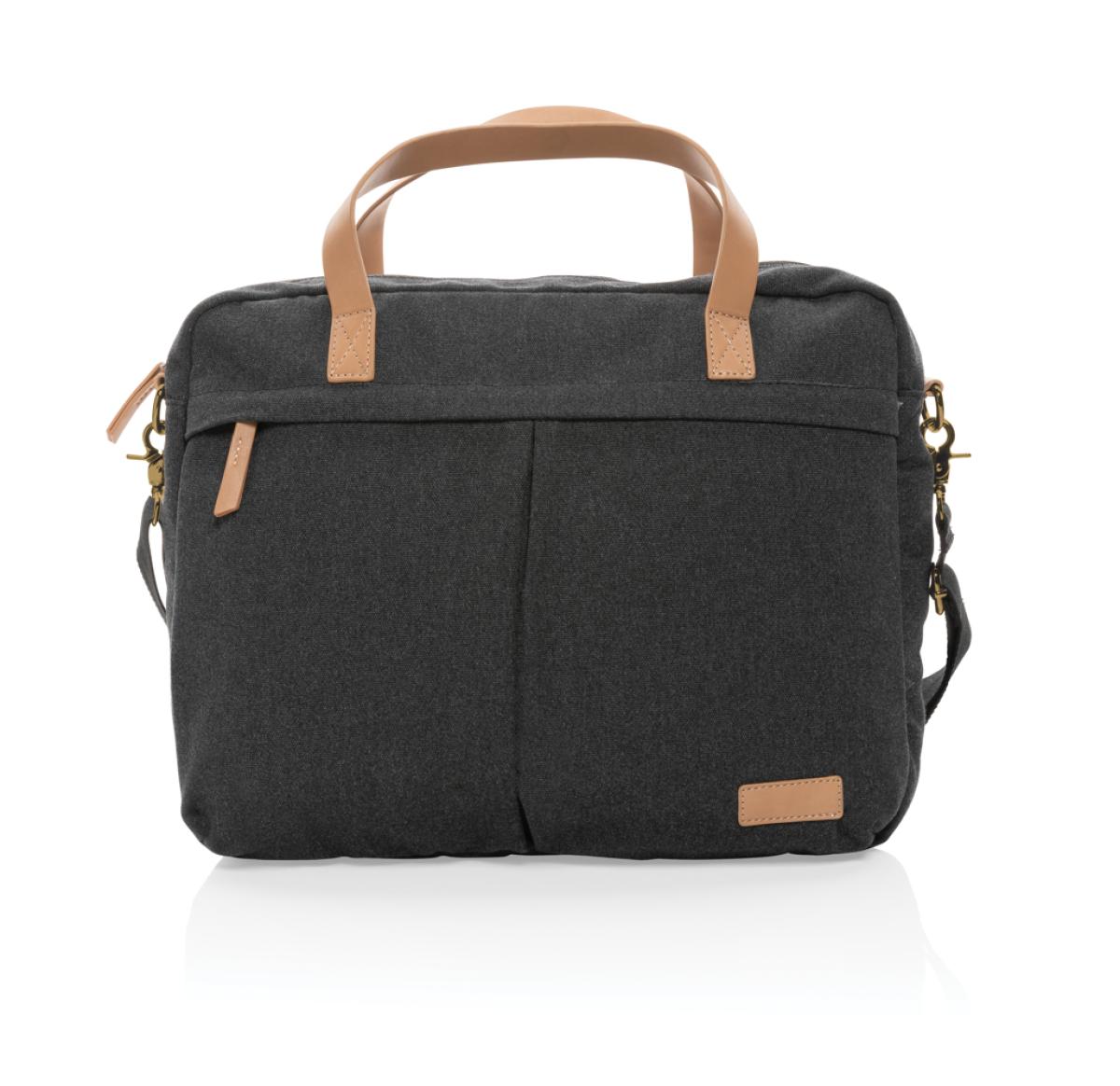 Printed Recycled Canvas Laptop Bags Black Impact AWARE™ 16 Oz.