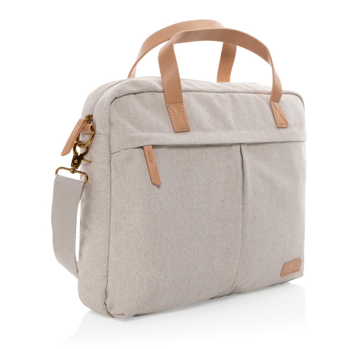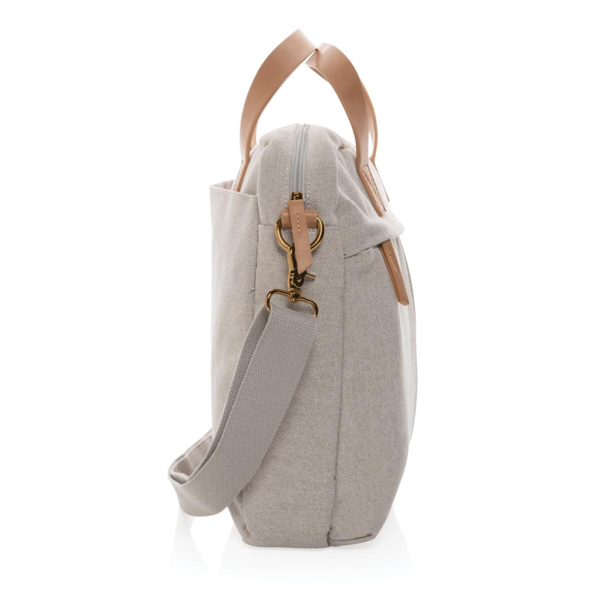 Printed Logo Recycled Canvas Laptop Bags Grey Impact AWARE™ 16 Oz.