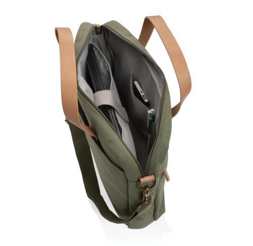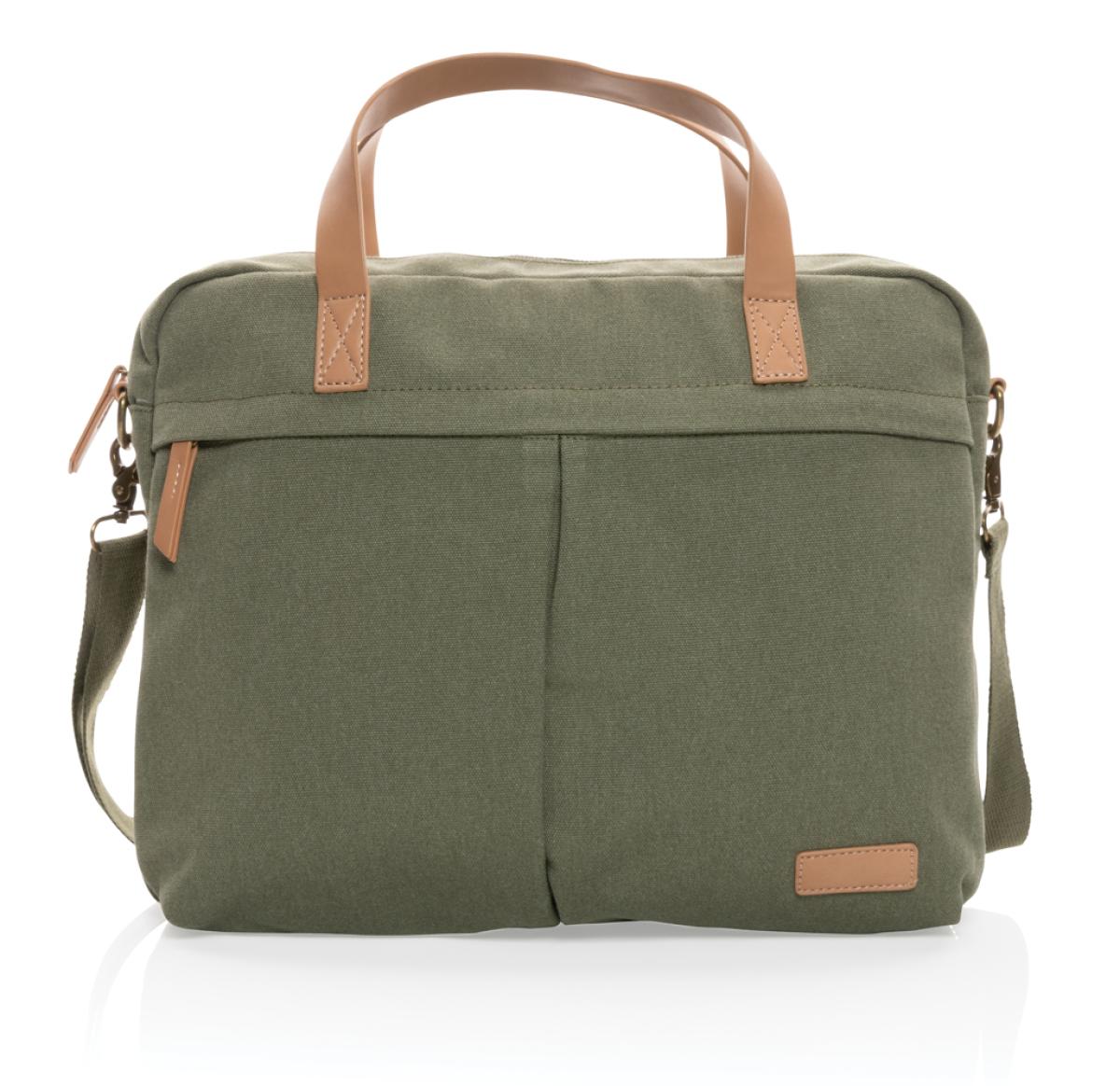Luxury Printed Recycled Canvas Laptop Bag Khaki Green Impact AWARE™ 16 Oz.