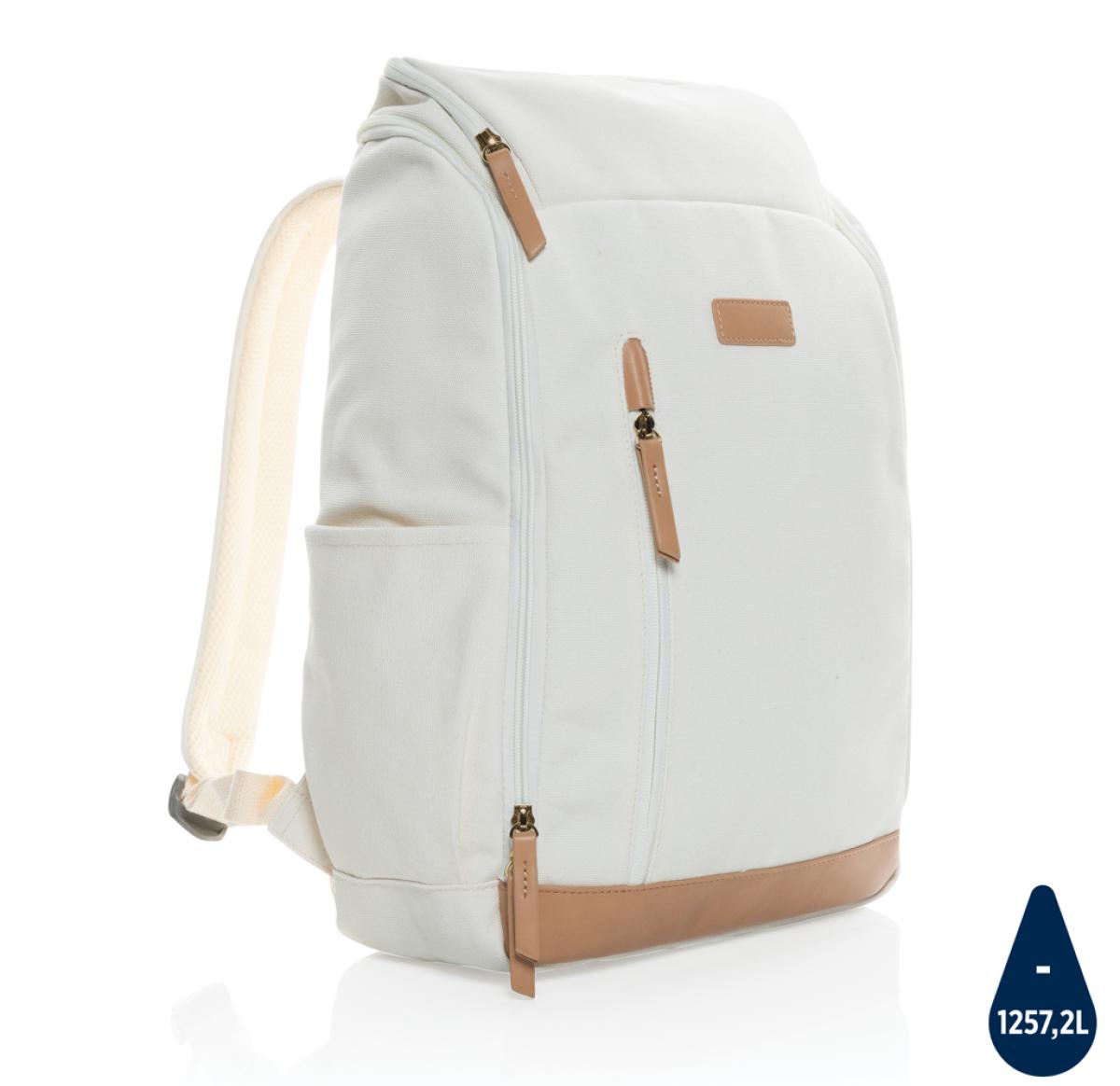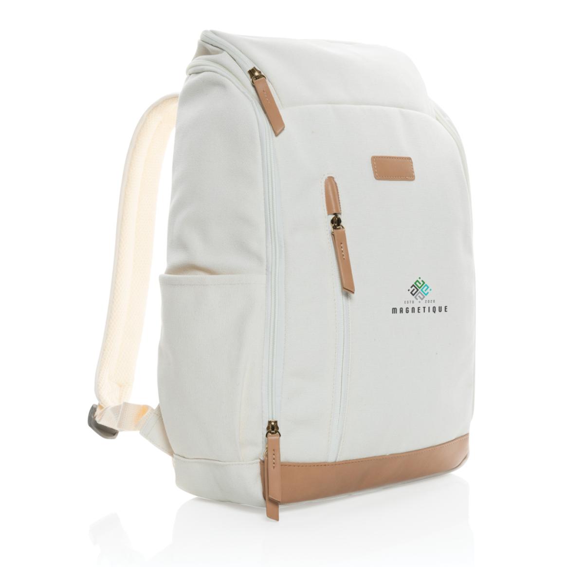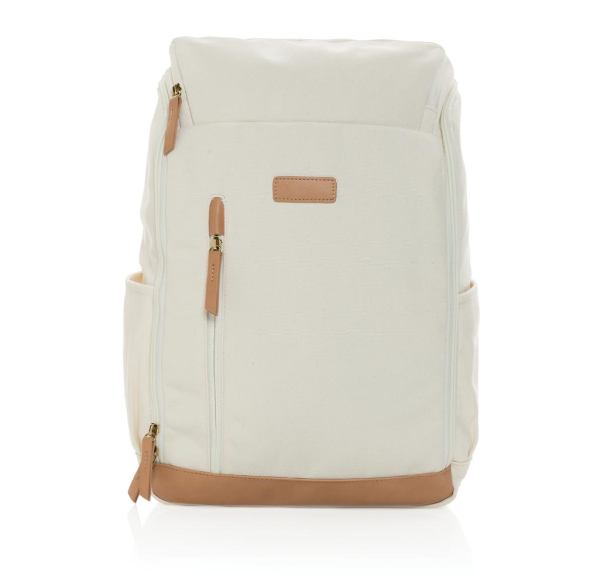 Custom Printed Recycled Canvas 15" Laptop Backpacks Cream Impact AWARE™ 16 Oz.