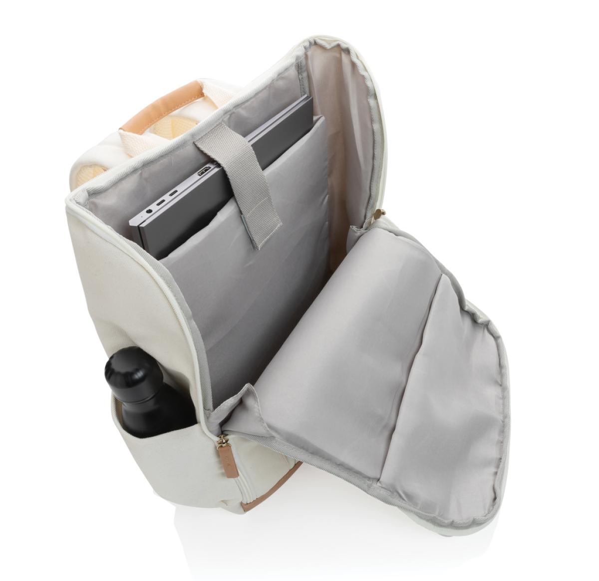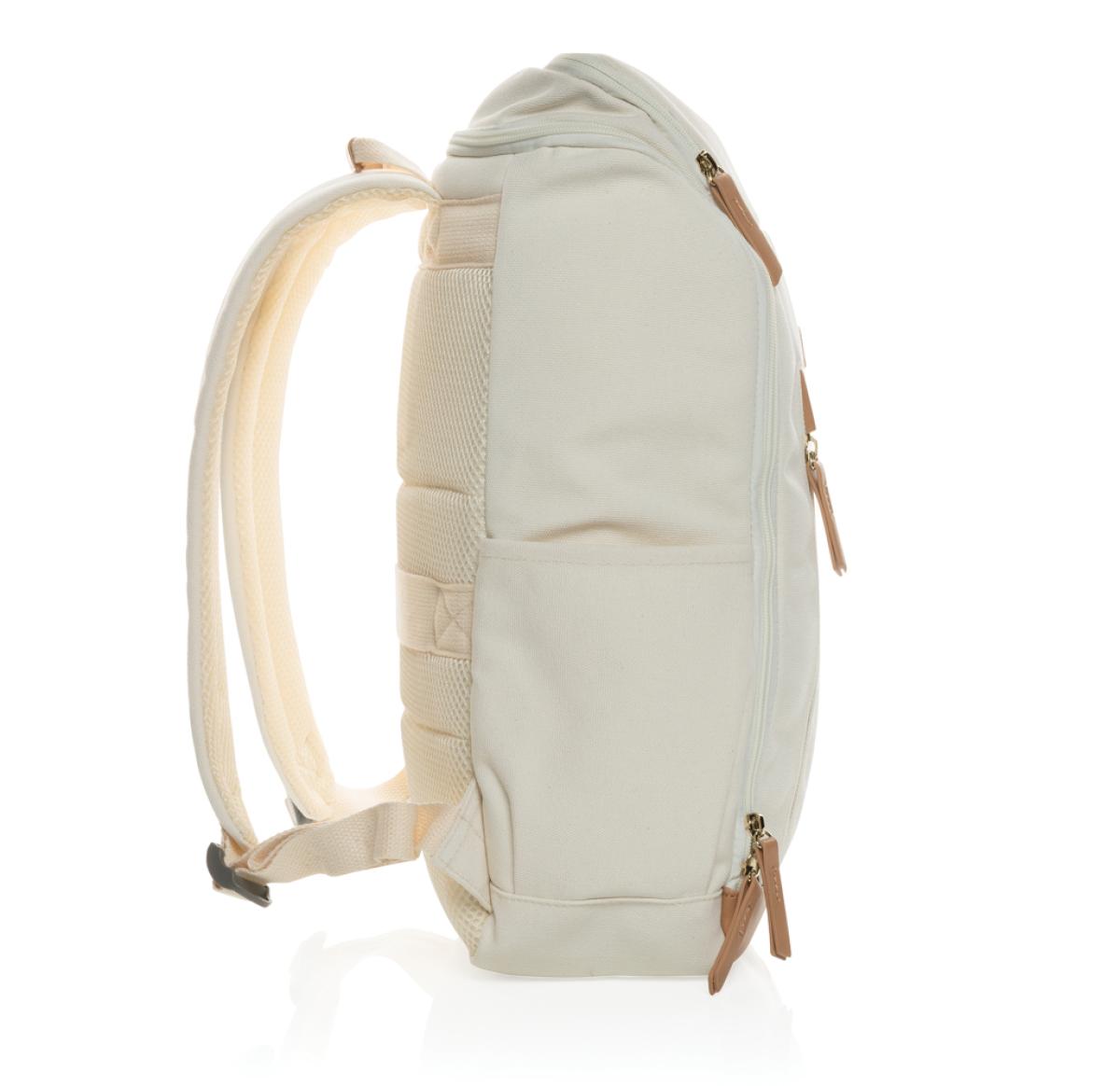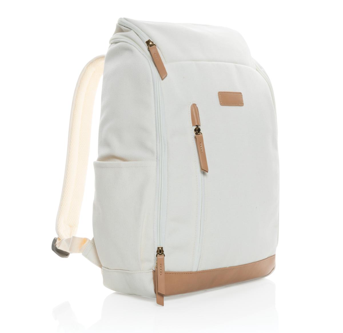 Custom Printed Recycled Canvas 15" Laptop Backpacks Cream Impact AWARE™ 16 Oz.