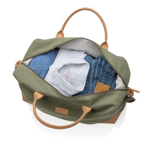 Custom Recycled Canvas Large Weekend Bag Impact AWARE™ 16 Oz. Green
