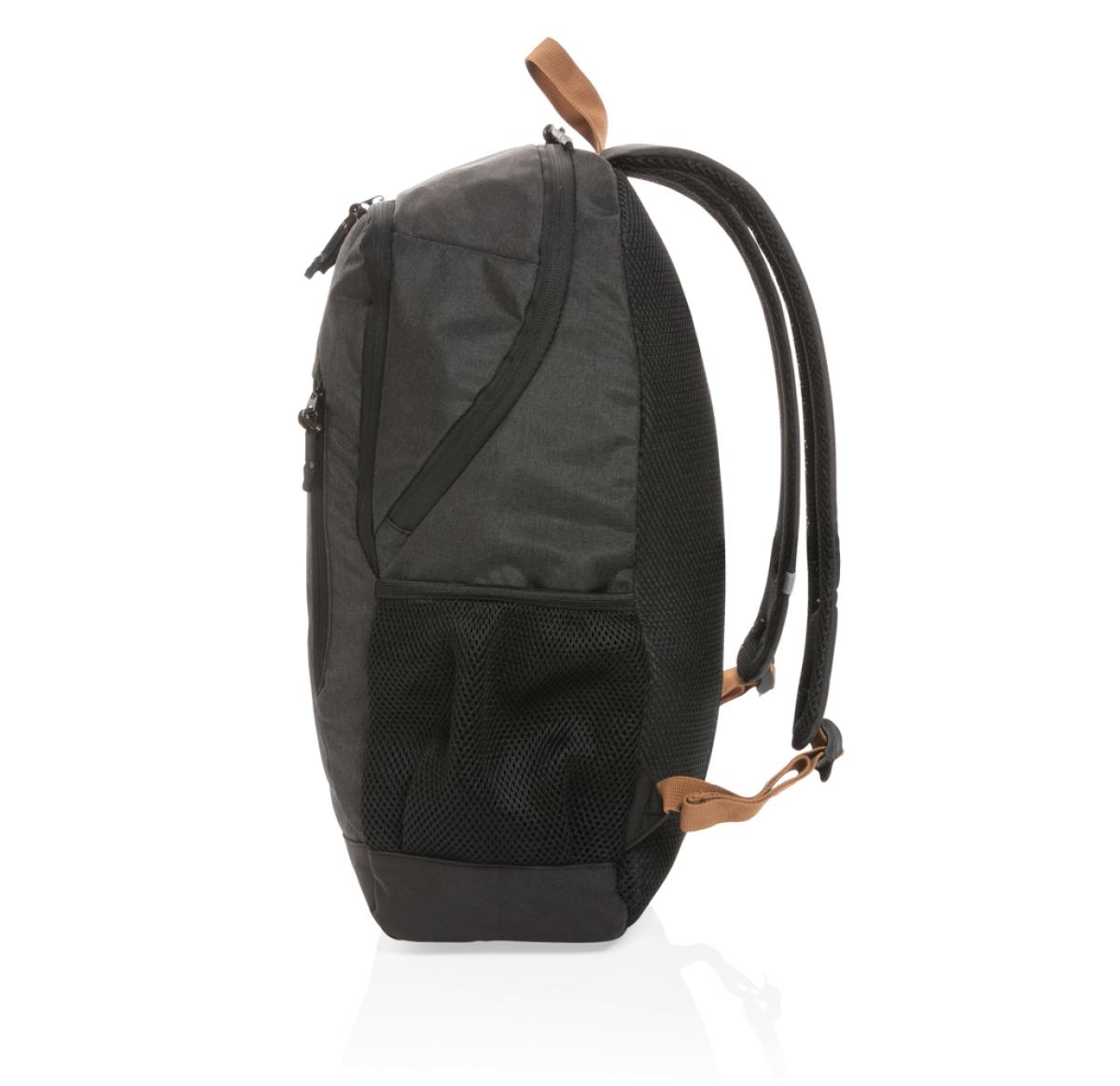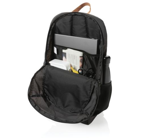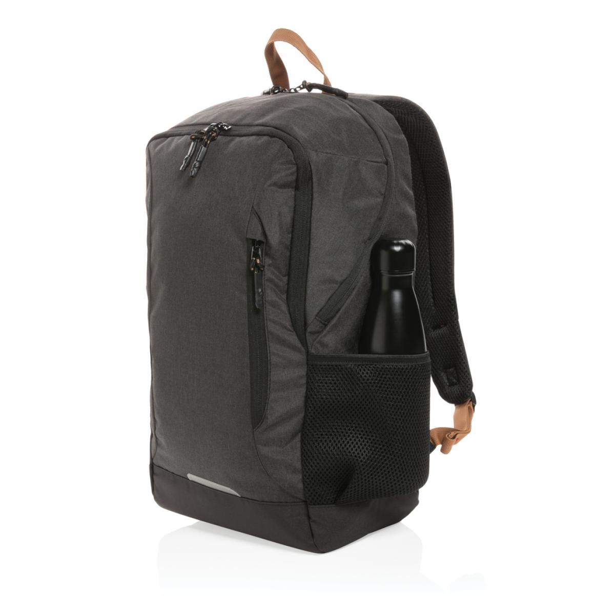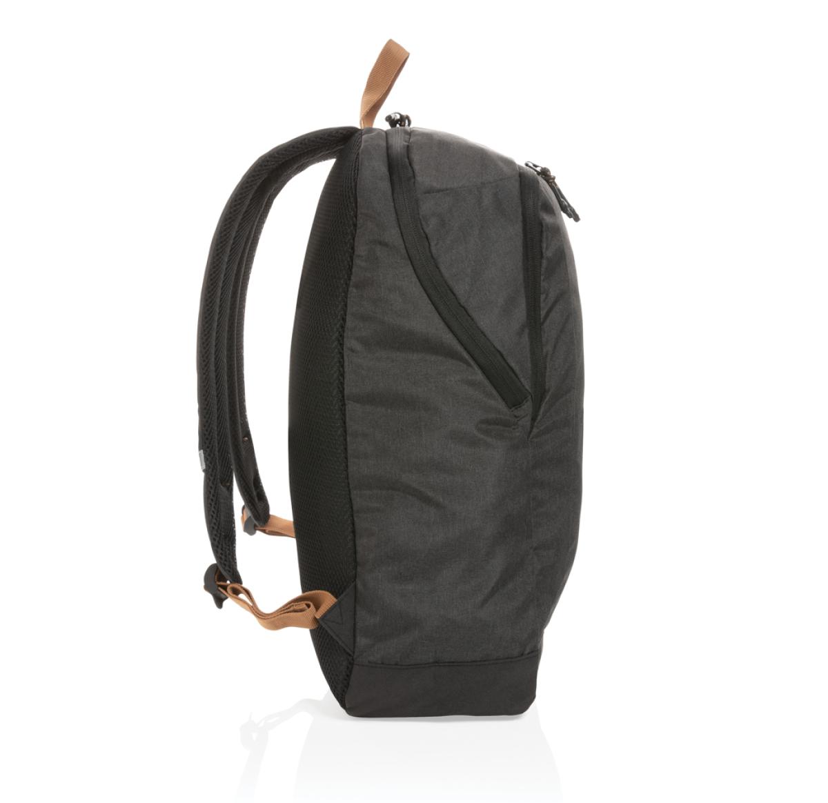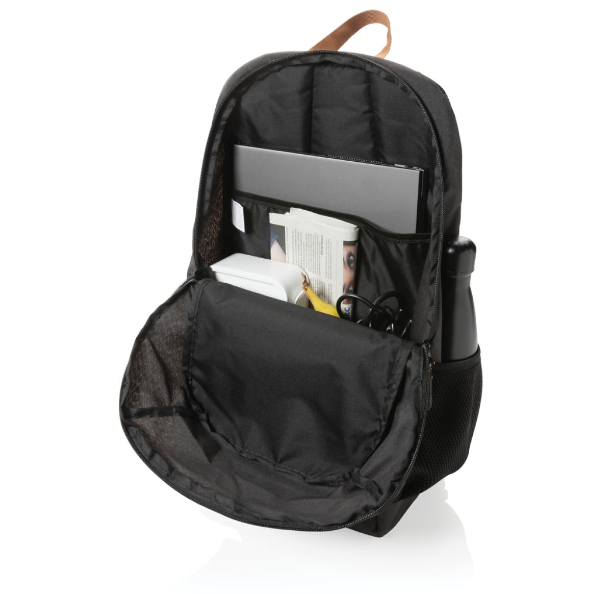 The Impact AWARE?? Urban outdoor backpack has more than enough room to accommodate your gear and has a great outdoor-inspired design. The backpack features a middle zipper compartment and a roomy main compartment. The front zipper pocket offers quick access to your daily essentials. The backpack is made with two tone 50% recycled polyester and the lining is 100% 150D recycled polyester. With AWARE?? tracer that validates the genuine use of recycled materials. Each bag saves 9.9 litres of water and has reused 16.65 0.5L PET bottles. 2% of proceeds of each Impact product sold will be donated to Water.org. PVC free.