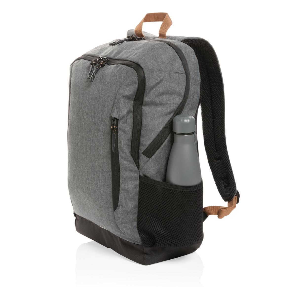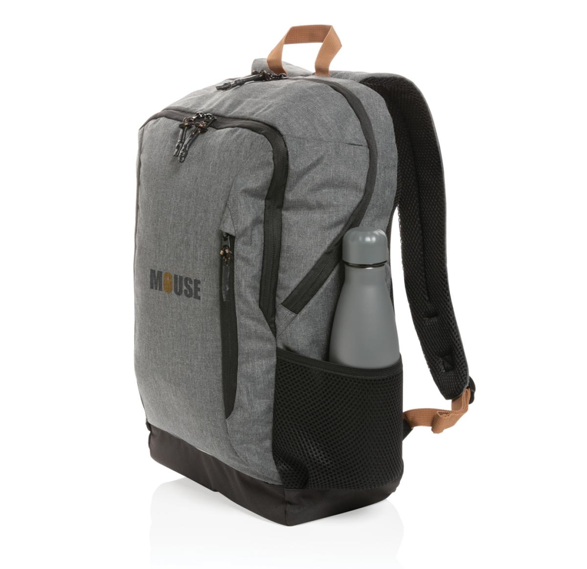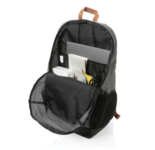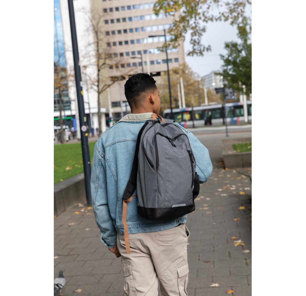 The Impact AWARE?? Urban outdoor backpack has more than enough room to accommodate your gear and has a great outdoor-inspired design. The backpack features a middle zipper compartment and a roomy main compartment. The front zipper pocket offers quick access to your daily essentials. The backpack is made with two tone 50% recycled polyester and the lining is 100% 150D recycled polyester. With AWARE?? tracer that validates the genuine use of recycled materials. Each bag saves 9.9 litres of water and has reused 16.65 0.5L PET bottles. 2% of proceeds of each Impact product sold will be donated to Water.org. PVC free.
