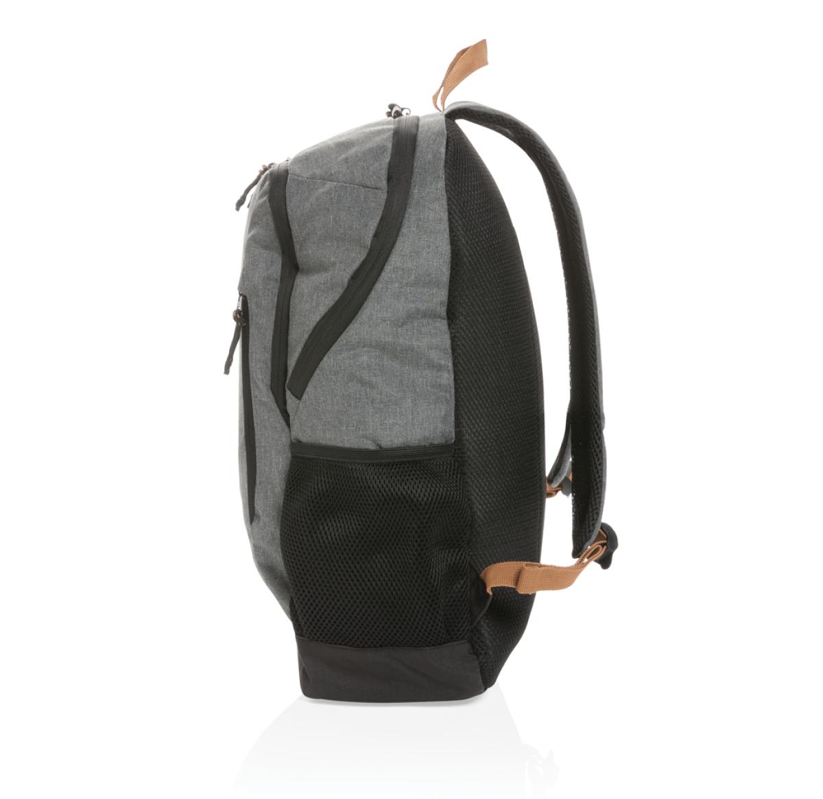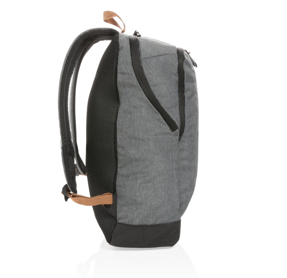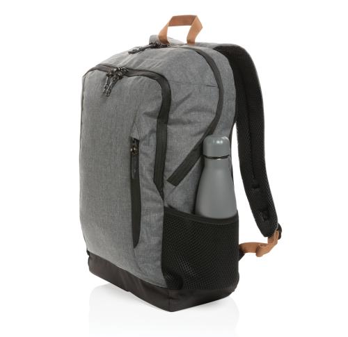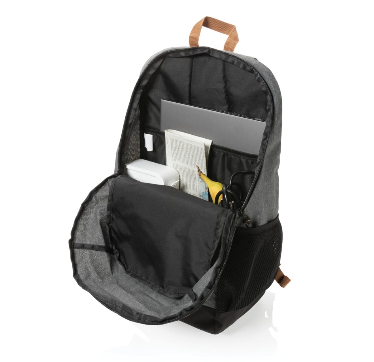 The Impact AWARE?? Urban outdoor backpack has more than enough room to accommodate your gear and has a great outdoor-inspired design. The backpack features a middle zipper compartment and a roomy main compartment. The front zipper pocket offers quick access to your daily essentials. The backpack is made with two tone 50% recycled polyester and the lining is 100% 150D recycled polyester. With AWARE?? tracer that validates the genuine use of recycled materials. Each bag saves 9.9 litres of water and has reused 16.65 0.5L PET bottles. 2% of proceeds of each Impact product sold will be donated to Water.org. PVC free.