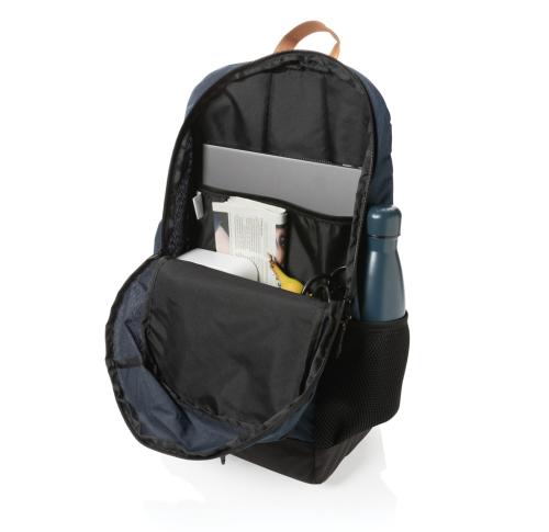 The Impact AWARE?? Urban outdoor backpack has more than enough room to accommodate your gear and has a great outdoor-inspired design. The backpack features a middle zipper compartment and a roomy main compartment. The front zipper pocket offers quick access to your daily essentials. The backpack is made with two tone 50% recycled polyester and the lining is 100% 150D recycled polyester. With AWARE?? tracer that validates the genuine use of recycled materials. Each bag saves 9.9 litres of water and has reused 16.65 0.5L PET bottles. 2% of proceeds of each Impact product sold will be donated to Water.org. PVC free.