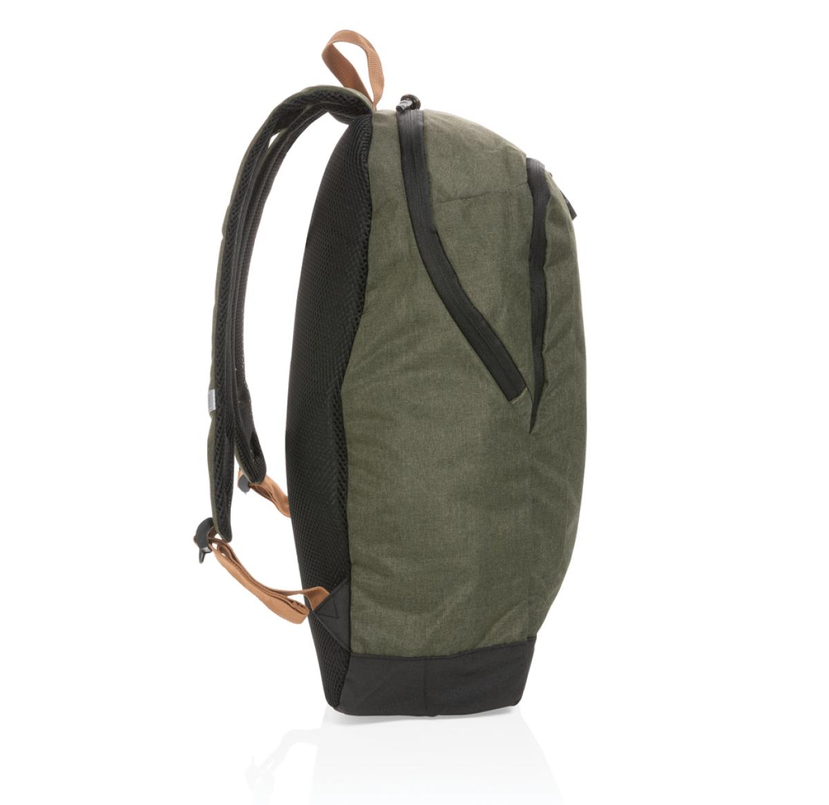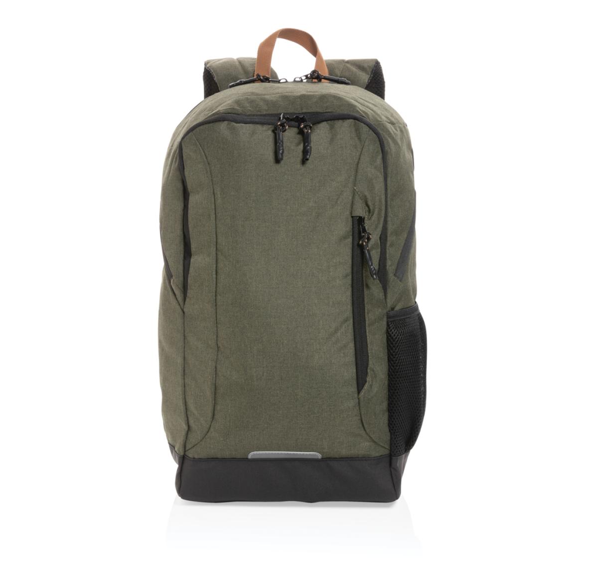 The Impact AWARE?? Urban outdoor backpack has more than enough room to accommodate your gear and has a great outdoor-inspired design. The backpack features a middle zipper compartment and a roomy main compartment. The front zipper pocket offers quick access to your daily essentials. The backpack is made with two tone 50% recycled polyester and the lining is 100% 150D recycled polyester. With AWARE?? tracer that validates the genuine use of recycled materials. Each bag saves 9.9 litres of water and has reused 16.65 0.5L PET bottles. 2% of proceeds of each Impact product sold will be donated to Water.org. PVC free.