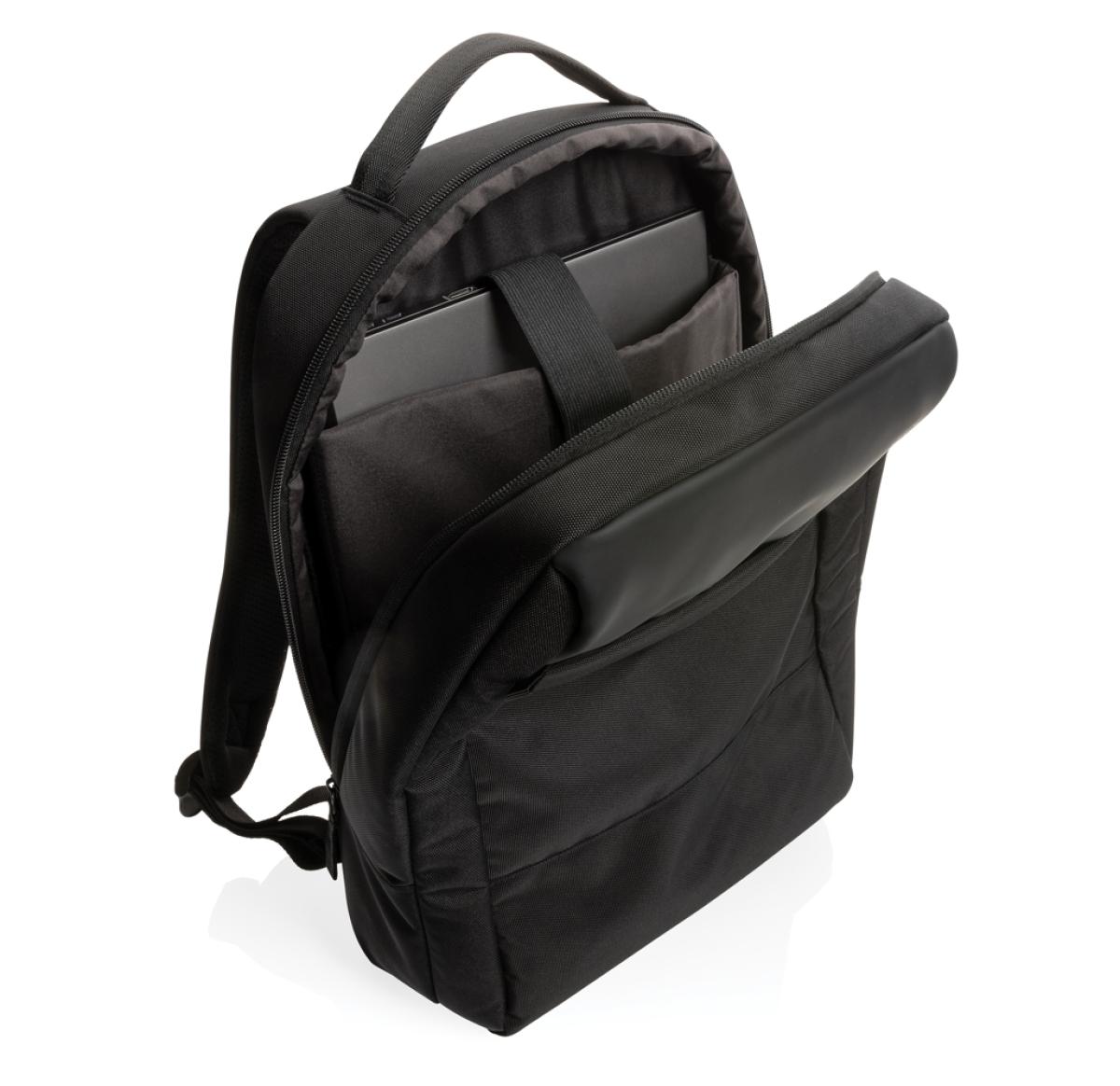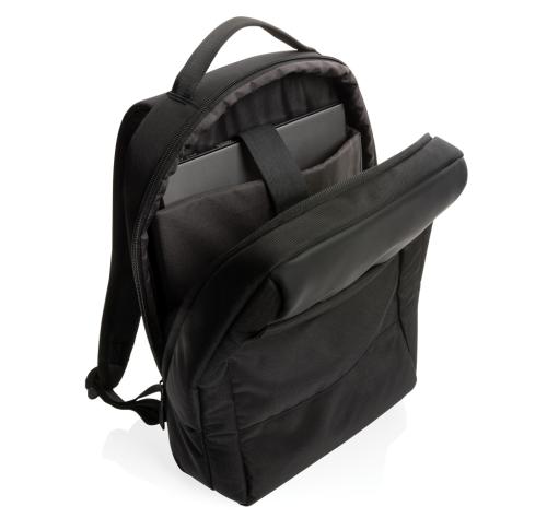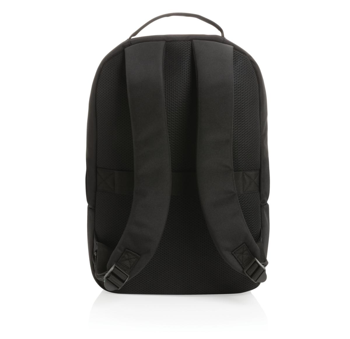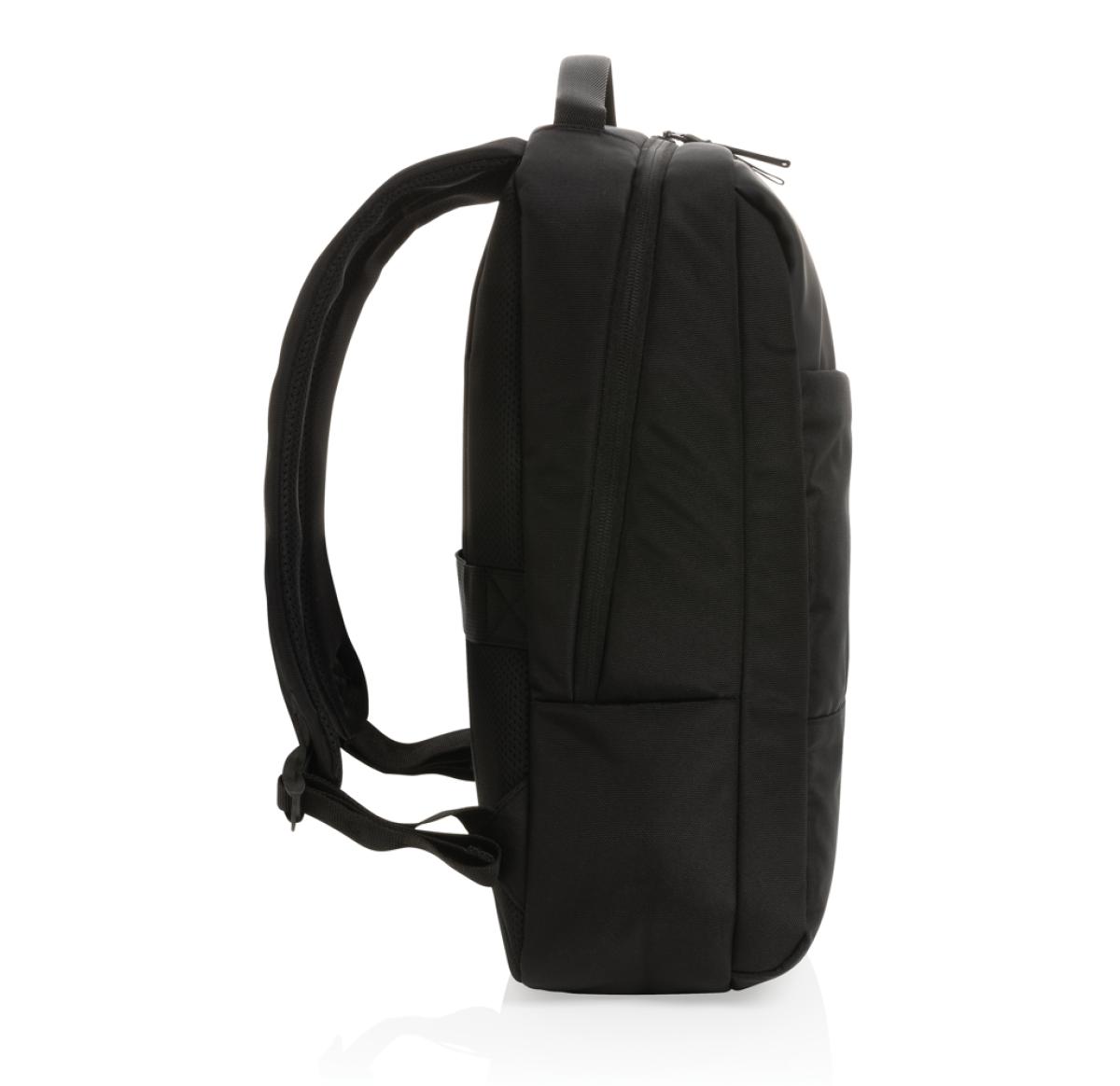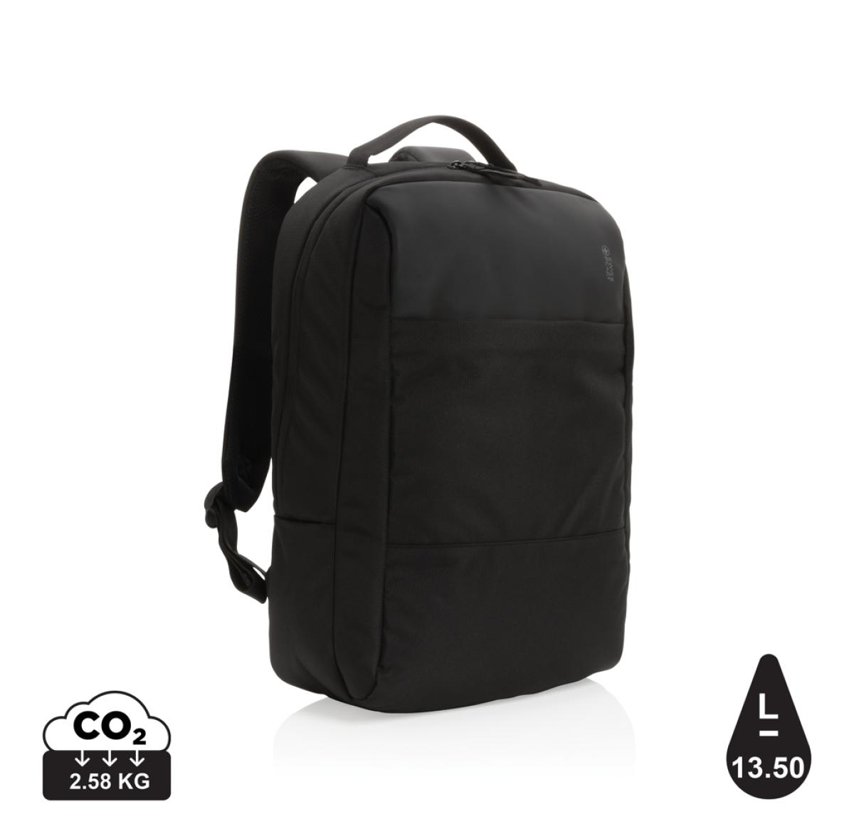 Protect, organise and carry your laptop and other essentials in this stylish Swiss Peak laptop backpack. The backpack features a padded 15.6 laptop compartment, multiple pockets and a luggage strap. With AWARE?? tracer that validates the genuine use of recycled materials. Each bag saves 13.5 litres of water and has reused 22.6 0.5L PET bottles. 2% of proceeds of each Impact product sold will be donated to Water.org. PVC free.