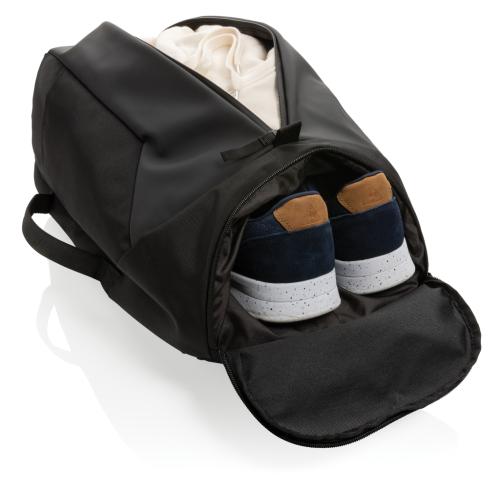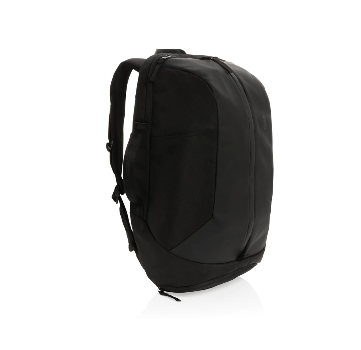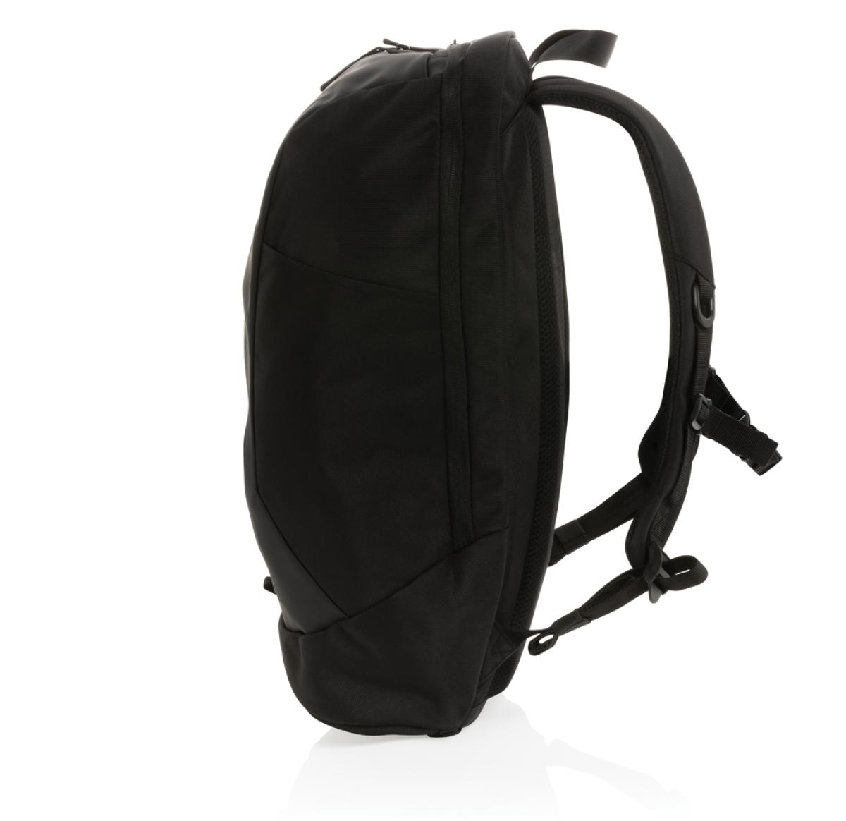 This Swiss Peak Aware?? work/gym backpack is a hybrid backpack designed for the gym and office. It features separate compartments for your gym gear and smart organisation for all your work essentials such as a 15.6 inch laptop compartment. Go from the gym to the office and never look out of place. With AWARE?? tracer that validates the genuine use of recycled materials. Each bag saves 18.6 litres of water and has reused 31.1 0.5L PET bottles. 2% of proceeds of each Impact product sold will be donated to Water.org. PVC free.