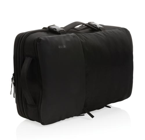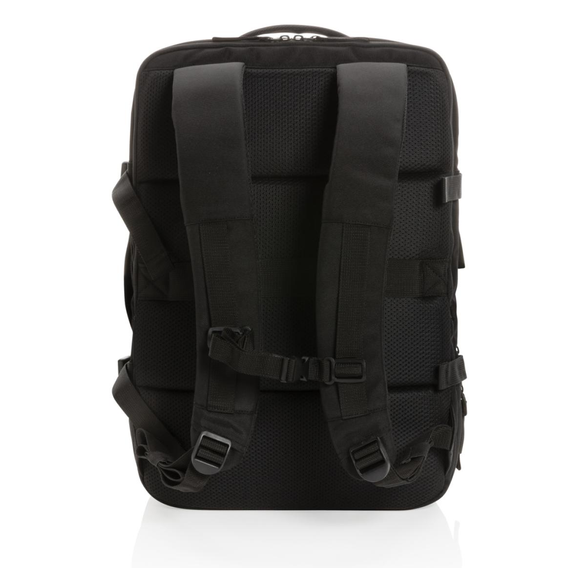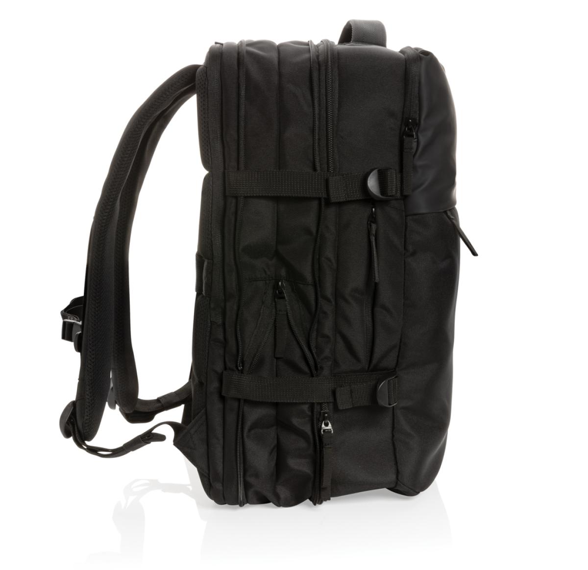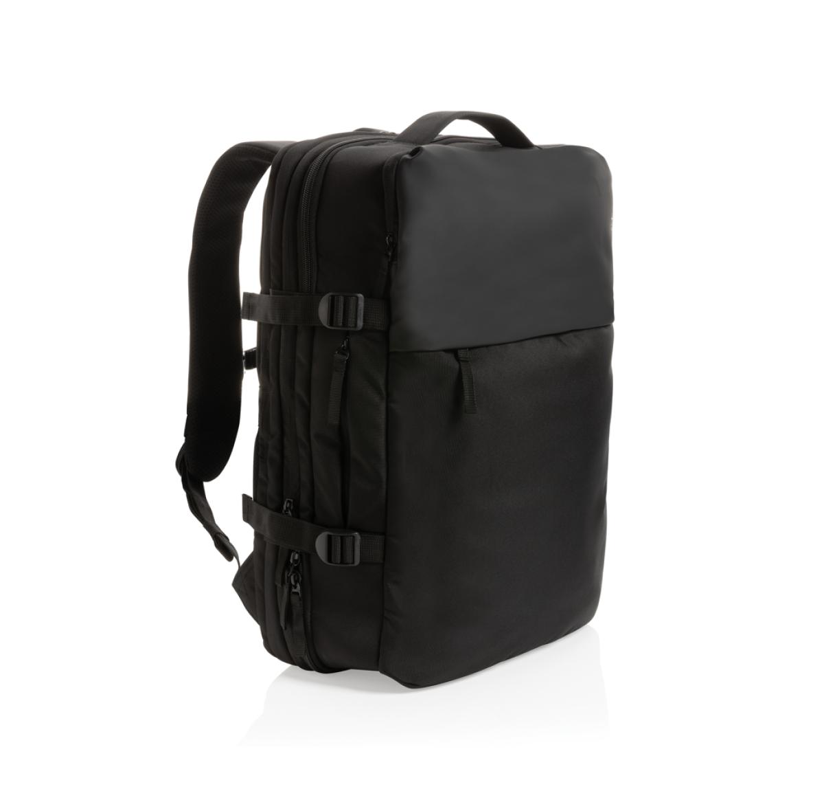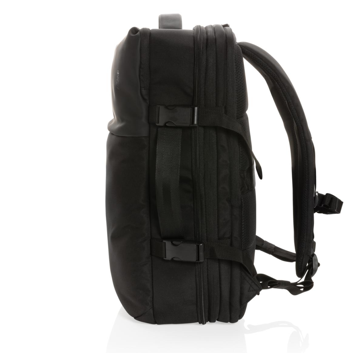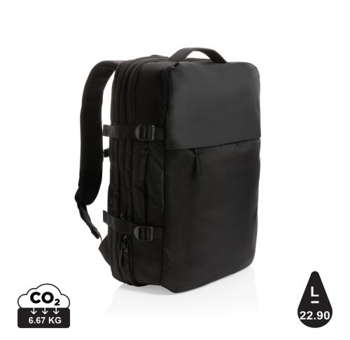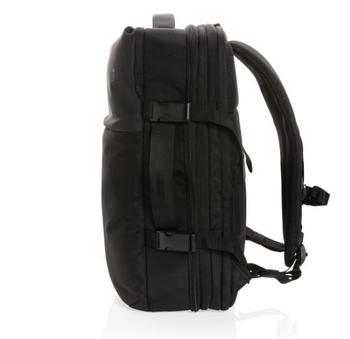 The Swiss Peak AWARE?? RPET 15.6' expandable weekend backpack fits your 15.6 inch laptop in a compartment designed for quick and easy airport screening. Its expandable main compartment increases capacity by more than 35% for longer trips. Side compression straps secure and stabilise contents for ease of carrying. The smart organiser pockets hold chargers cables and other essentials. With luggage strap. With AWARE?? tracer that validates the genuine use of recycled materials. Each bag saves 22.9 litres of water and has reused 38.4 0.5L PET bottles. 2% of proceeds of each Impact product sold will be donated to Water.org. PVC free.