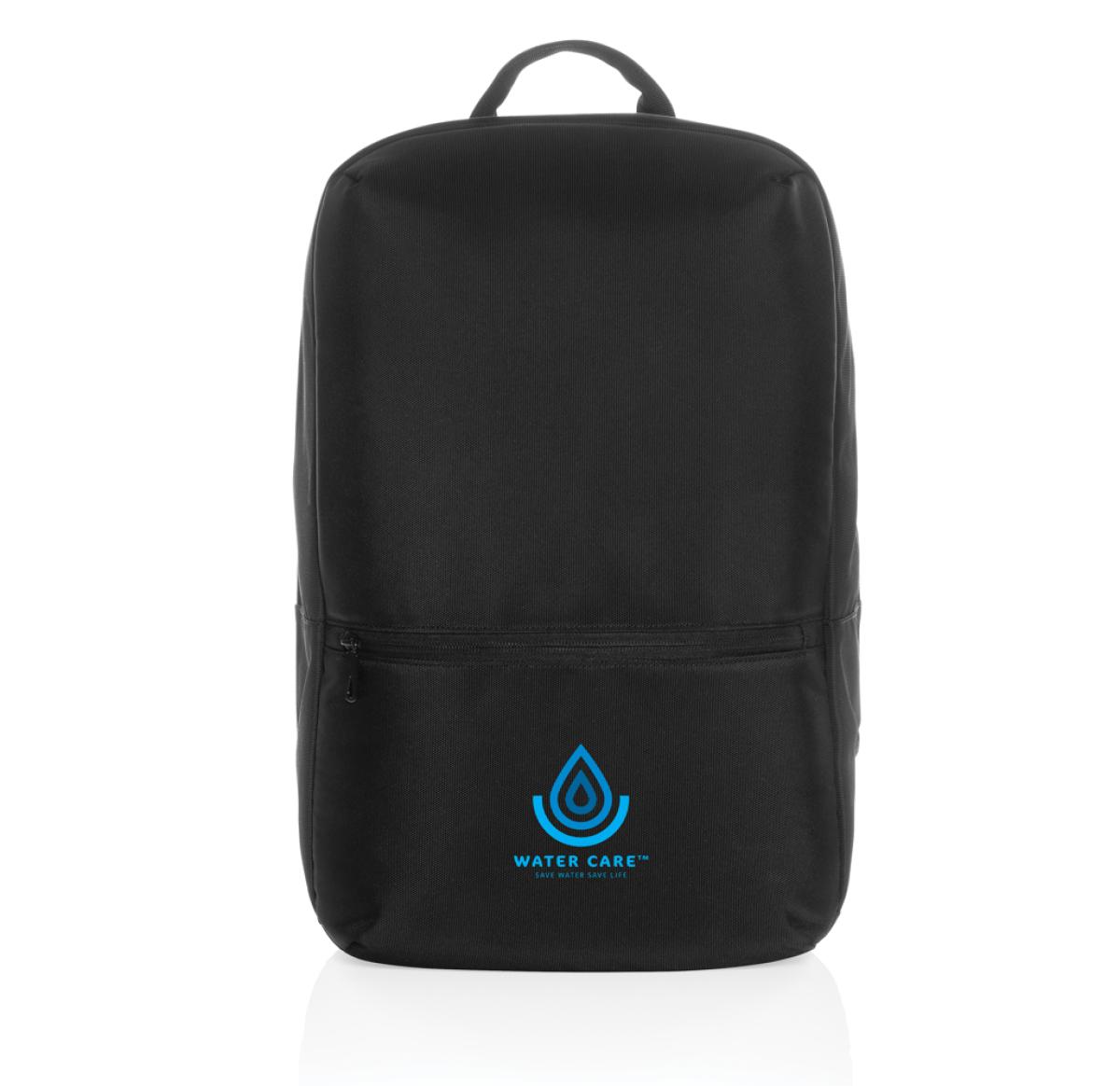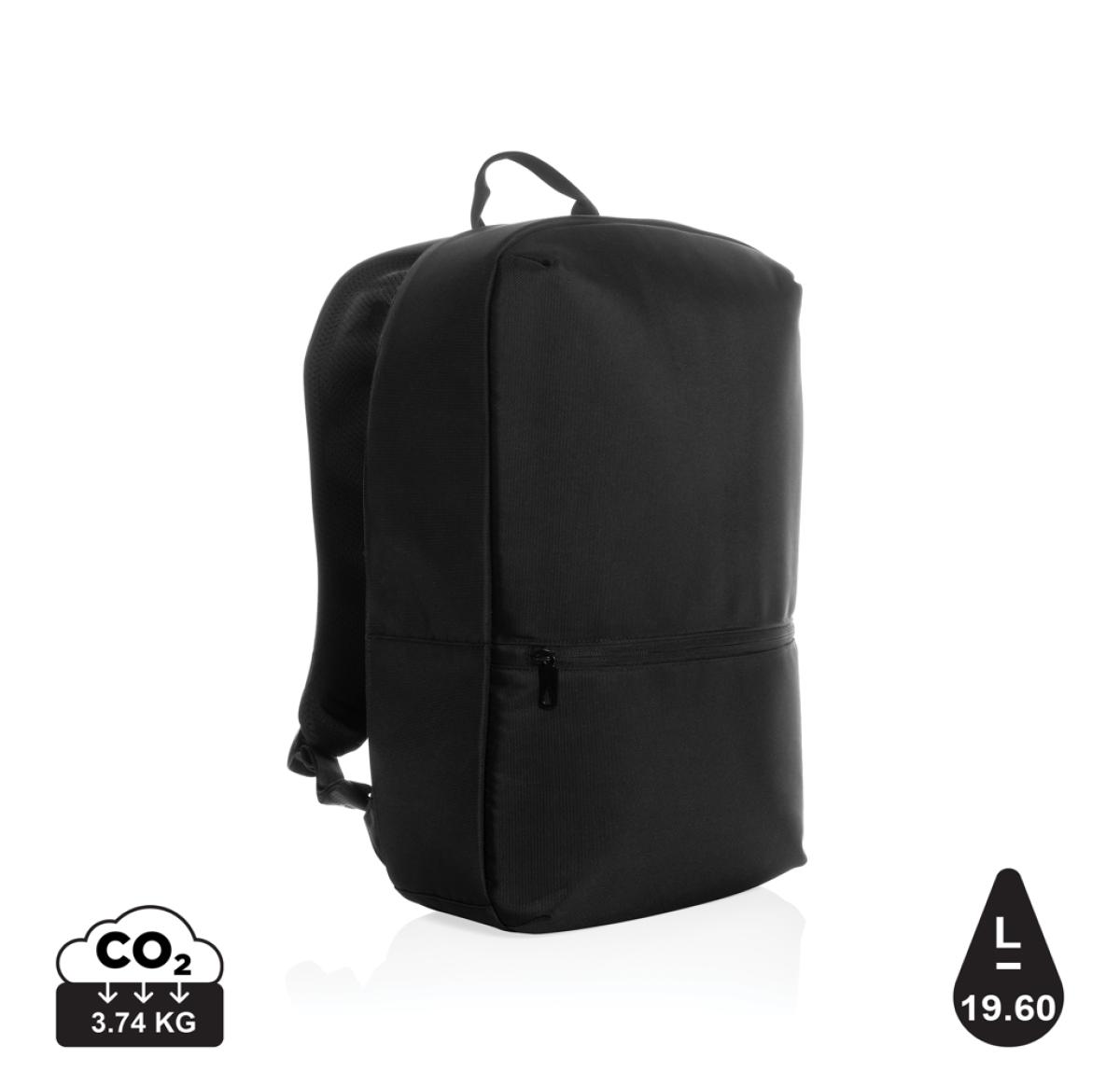 This Impact AWARE?? 1200D 15.6" laptop backpack is the ideal backpack for students and commuters alike. Clean lines but yet a super practical daypack. An inner pocket with a laptop compartment stows laptops securely and safely. The bag has a padded back for extra comfort during your commute. Two RFID pockets. The exterior and interior is made with 100% recycled polyester. With AWARE?? tracer that validates the genuine use of recycled materials. Each bag saves 19.6 litres of water and has reused 32.9 0.5L PET bottles. 2% of proceeds of each Impact product sold will be donated to Water.org. PVC free.